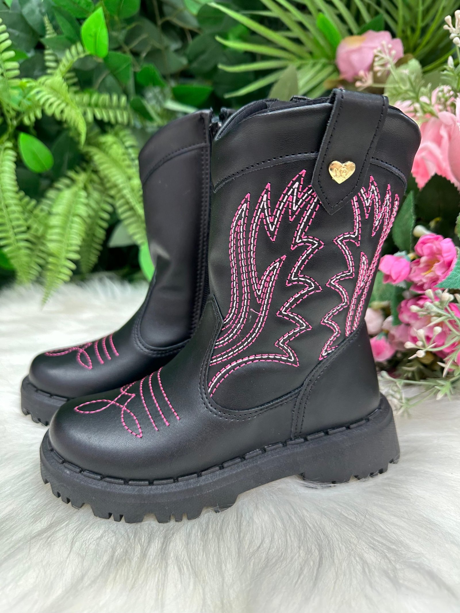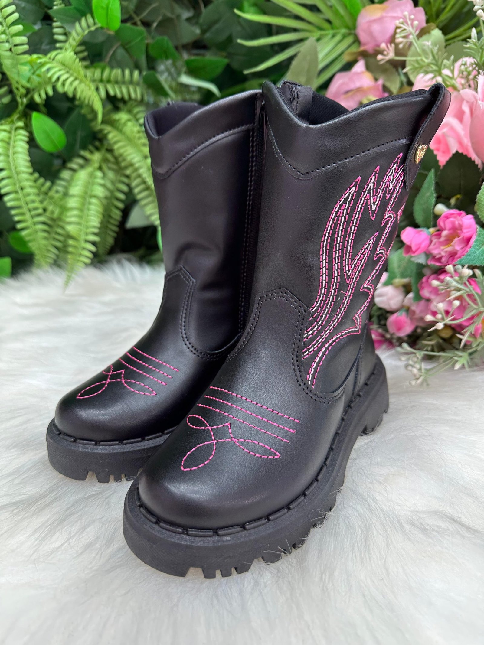 Bota Nilqi Texana Isabella Preto e Pink
