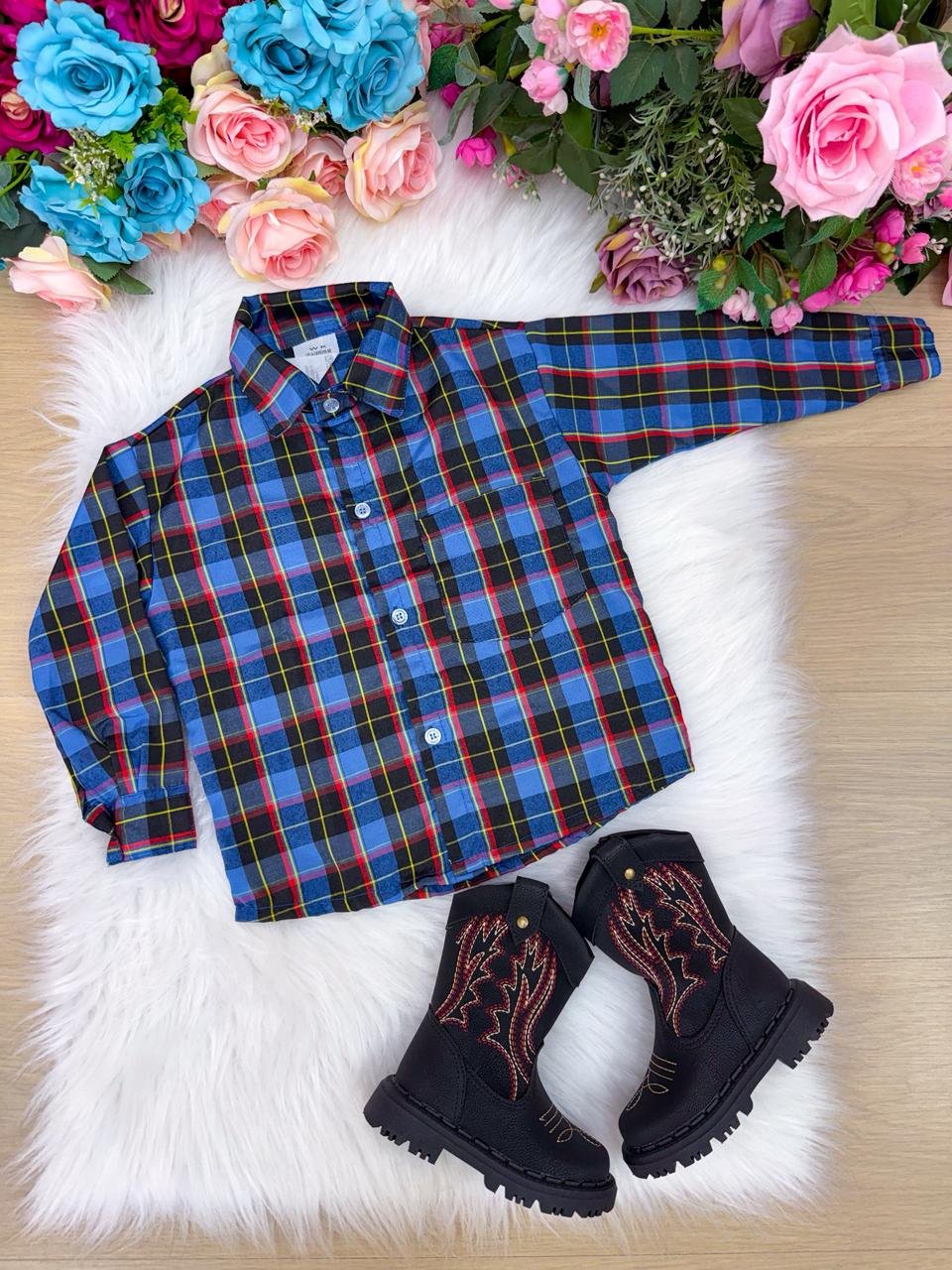 Clássica, confortável e indispensável para as festas mais animadas do ano. Essa camisa xadrez é perfeita para compor looks juninos e julinos cheios de charme, sem abrir mão do conforto que criança precisa.
