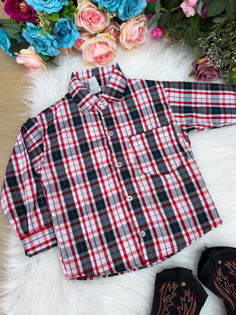 Clássica, confortável e indispensável para as festas mais animadas do ano. Essa camisa xadrez é perfeita para compor looks juninos e julinos cheios de charme, sem abrir mão do conforto que criança precisa.
