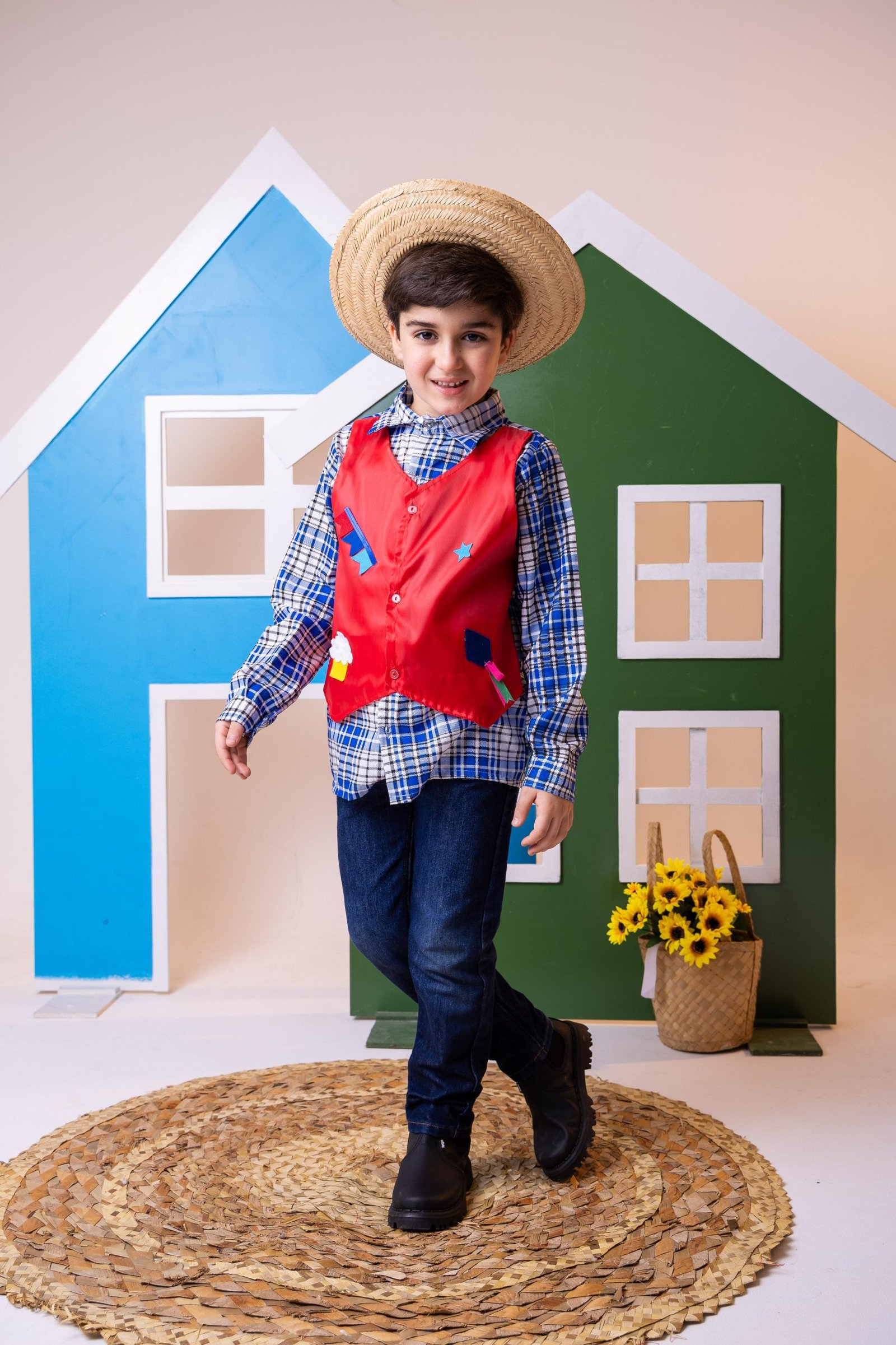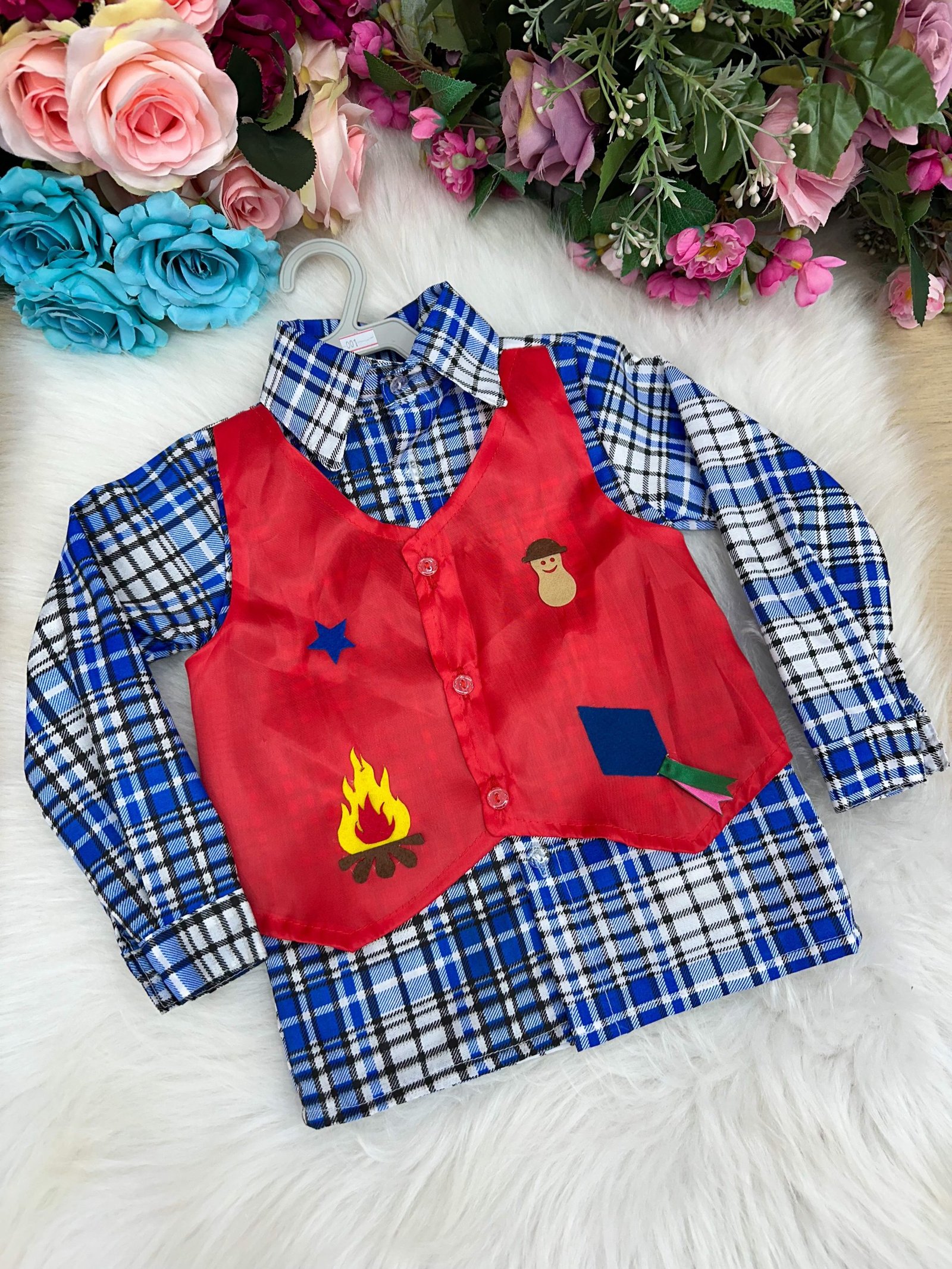 Camisa Junina Com Colete(Colete é colado Na frente da camisa)