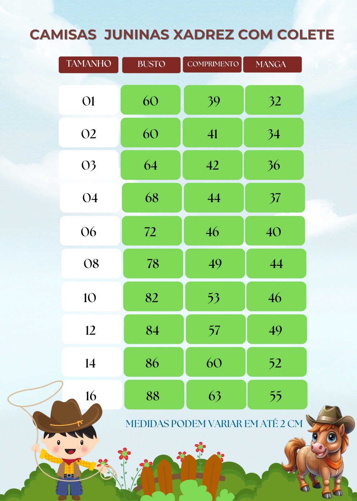 Camisa Junina Com Colete(Colete é colado Na frente da camisa)