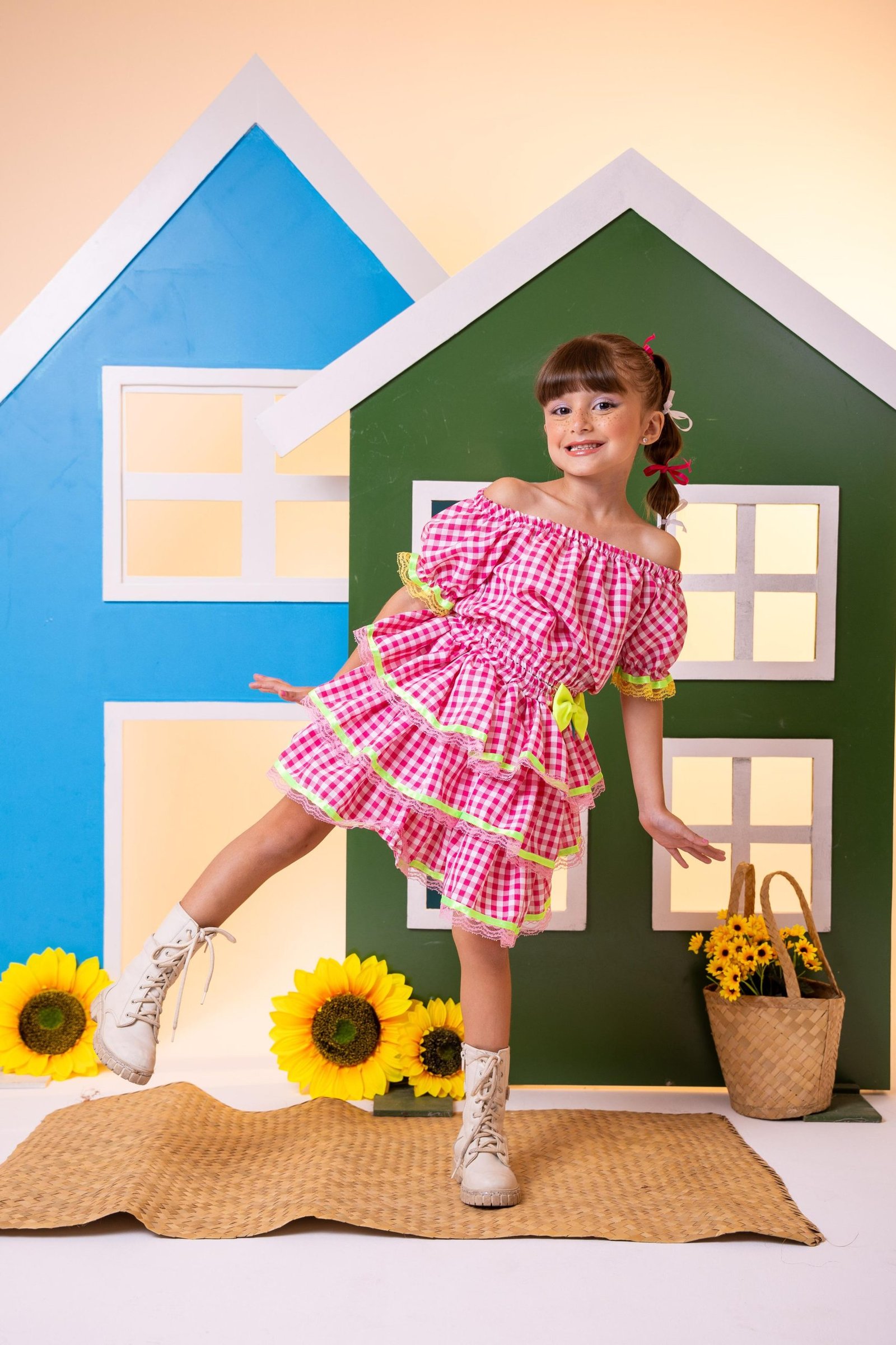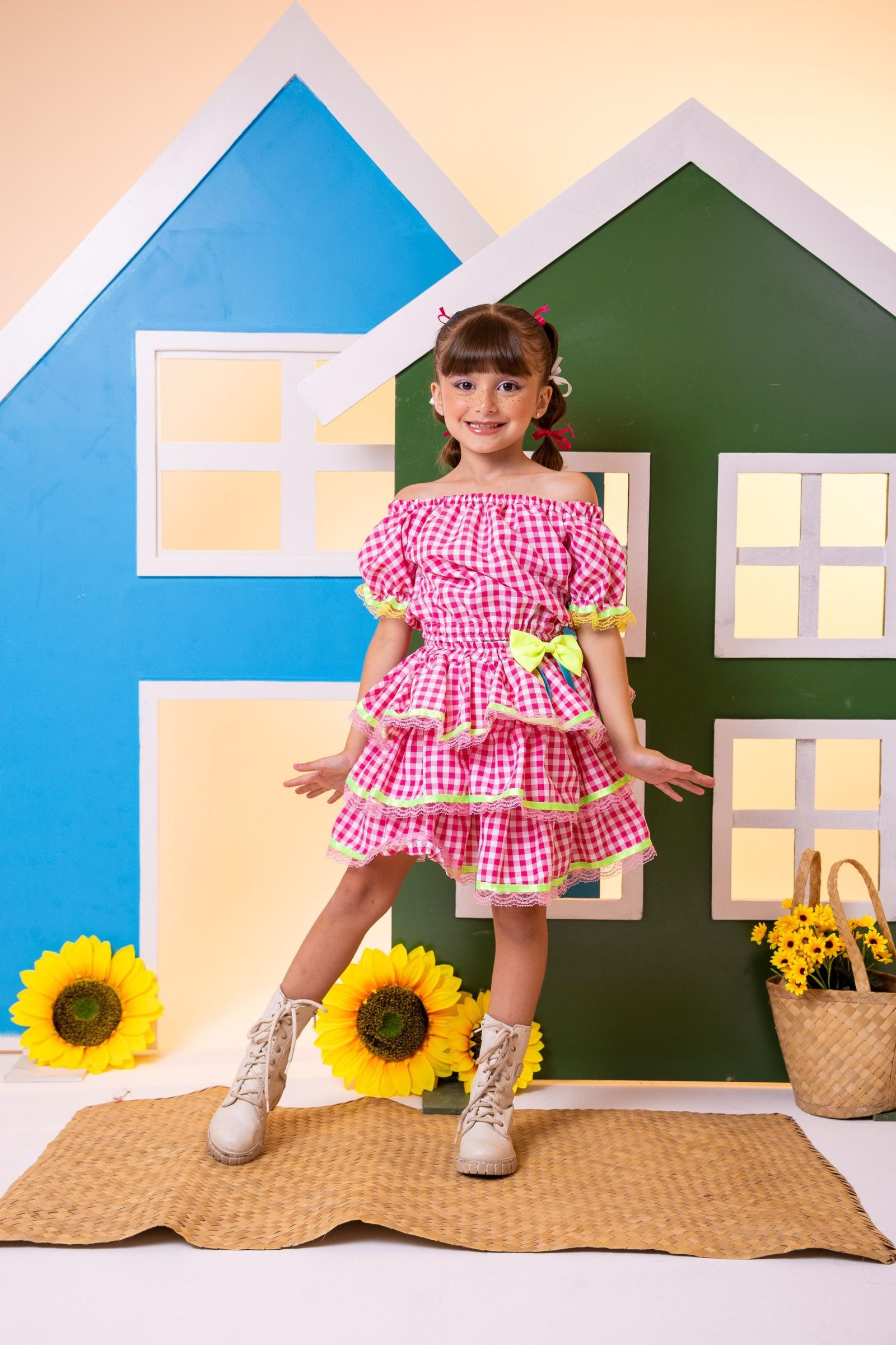 Conjunto Junino Banana Club Luxo Sofia Xadrez Rosa