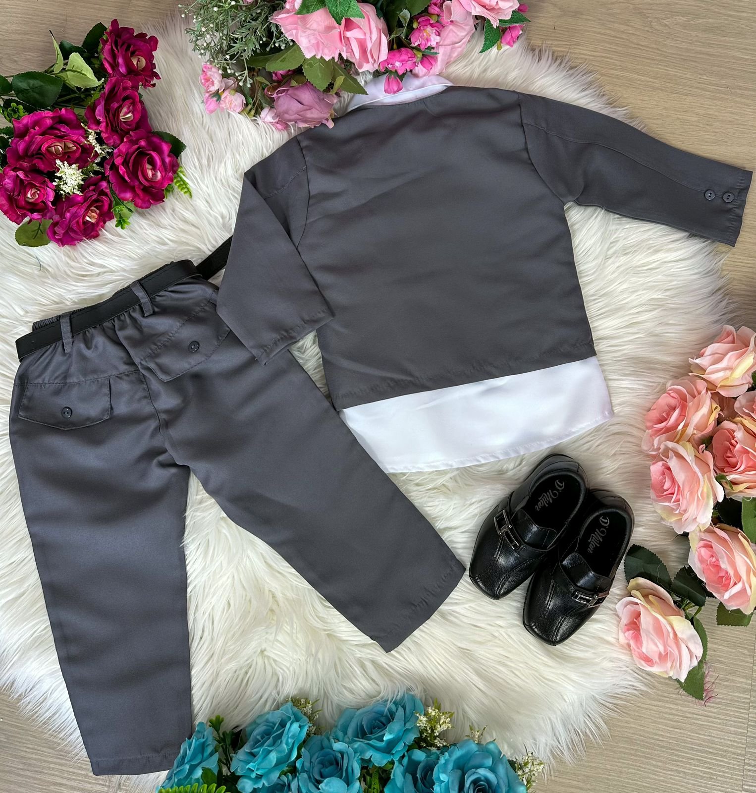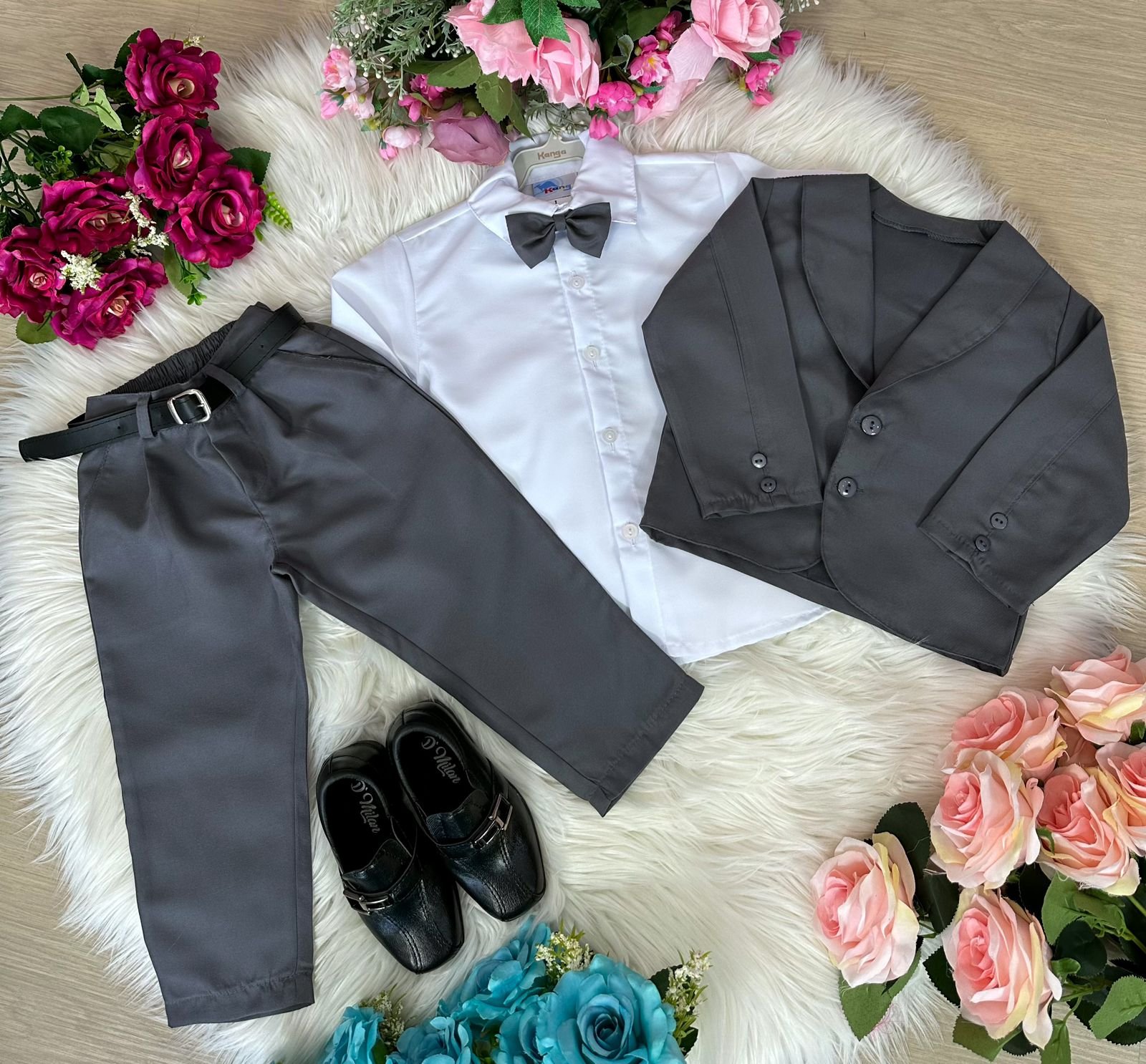 Conjunto Meninos Kanga Social Bruno Cinza Grafite Terno