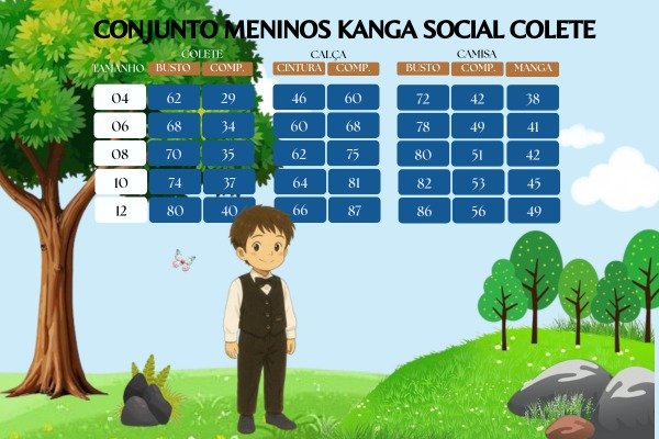 Conjunto composto por: Camisa social manga longa na cor branca, calça, colete e gravata borboleta na cor preta.