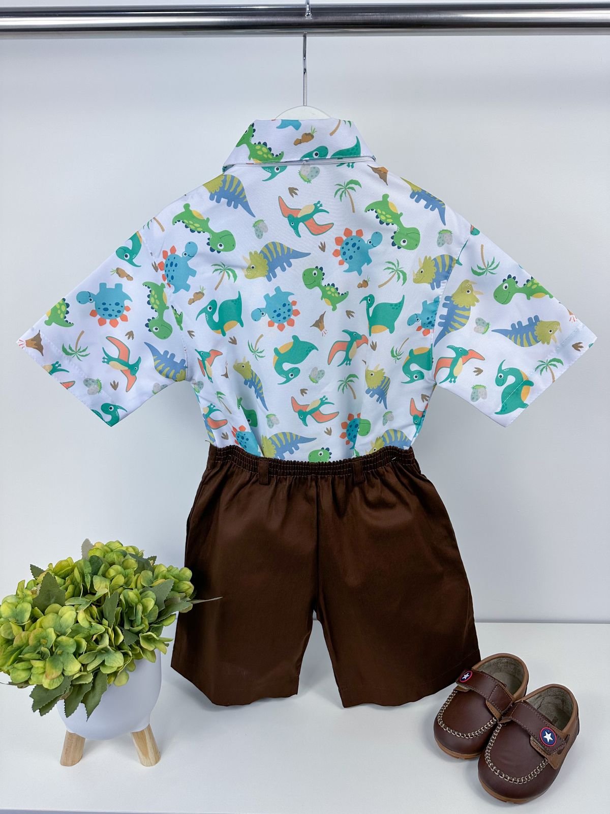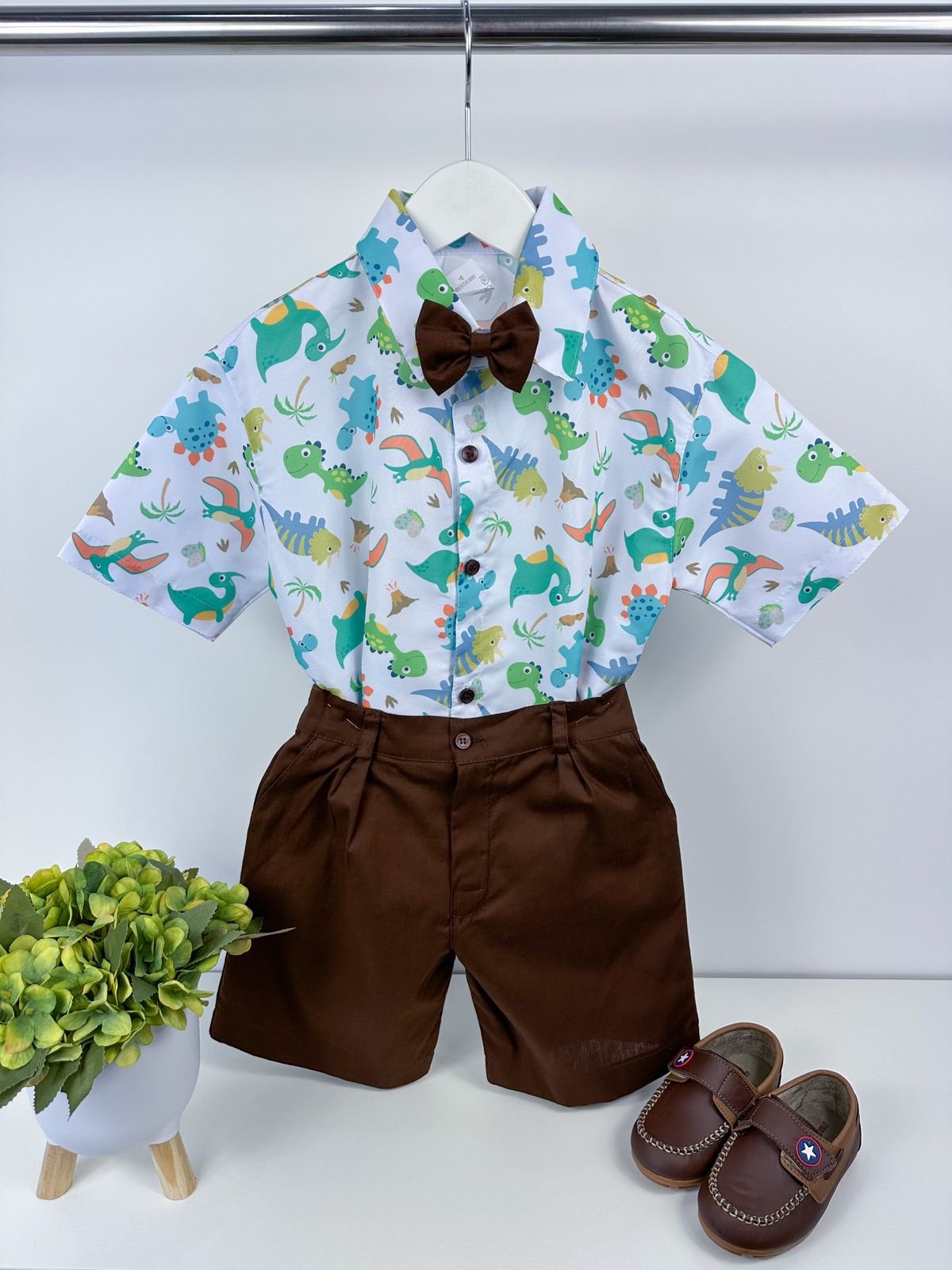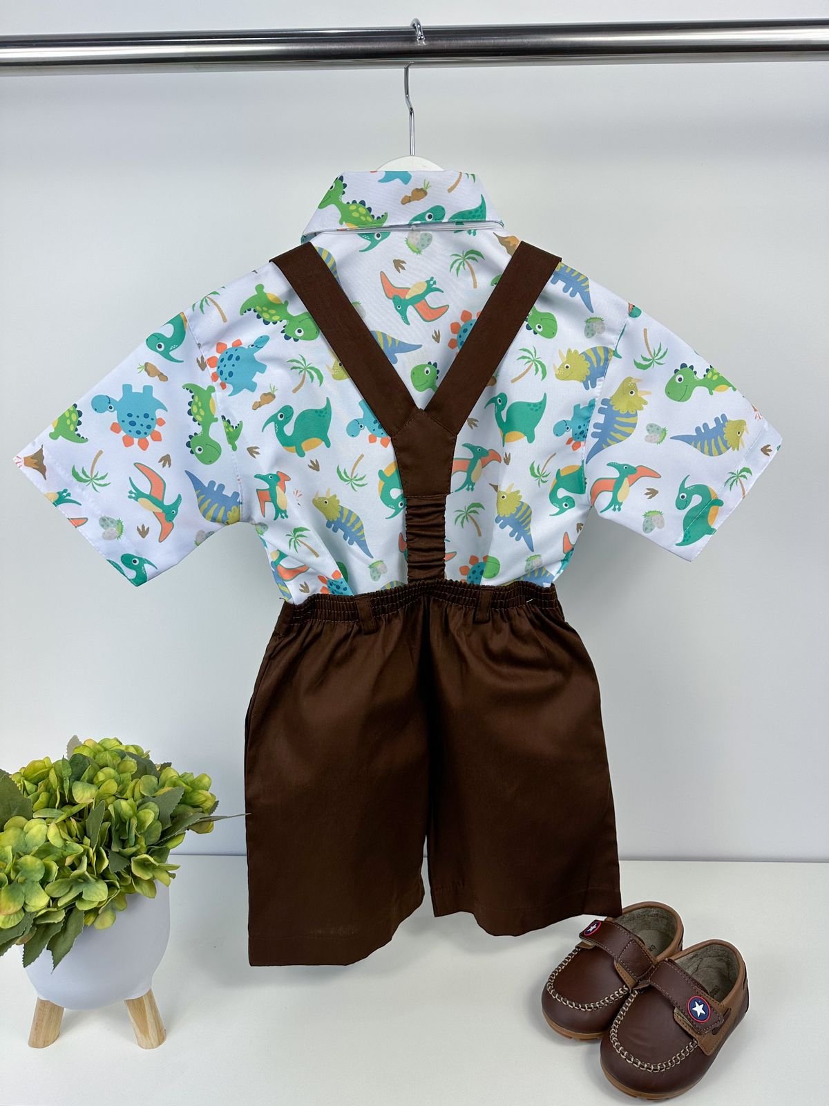Conjunto composto por: Camisa Personagem, Shorts com suspensorio e gravata borboleta na cor Azul Tiffany.