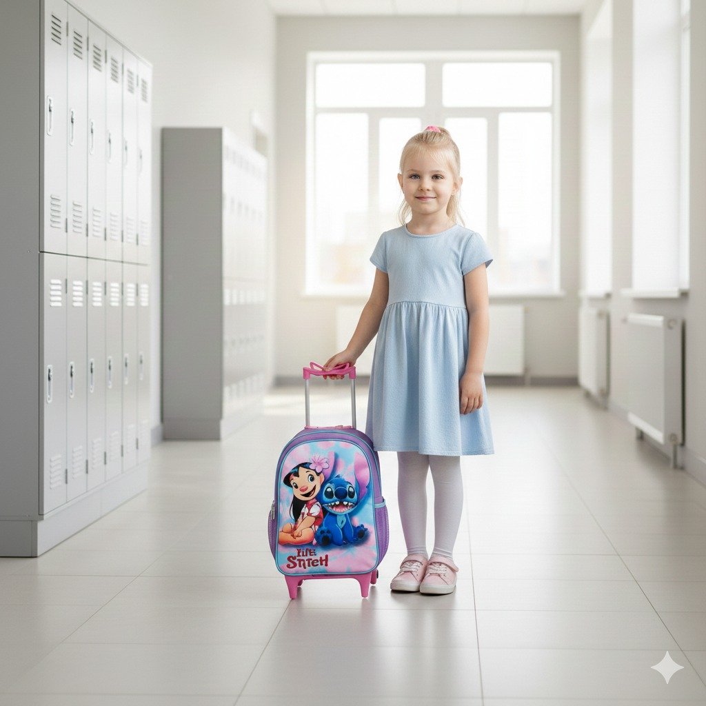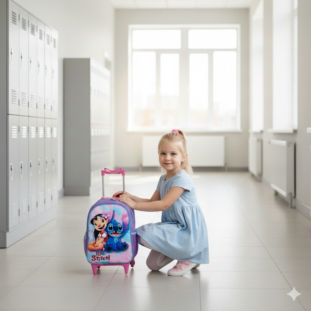 A mochila perfeita para a rotina escolar: cabe livros e cadernos grandes com sobra de espaço. Indicada para crianças até 10 anos, feita em poliéster e nylon para durar o ano inteiro.