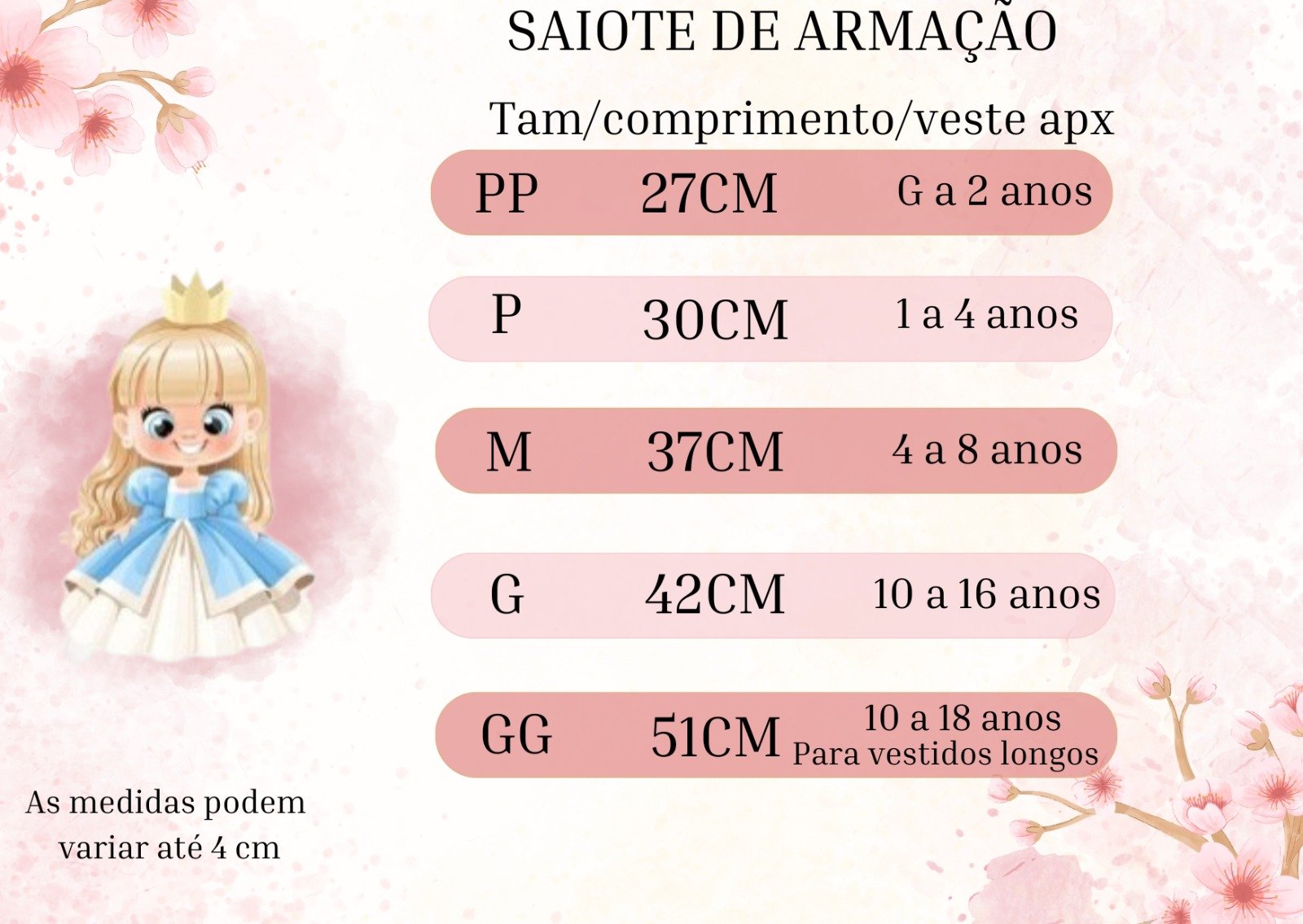 GG – Veste 12 a 18 anos (Apropriado para vestidos longos)