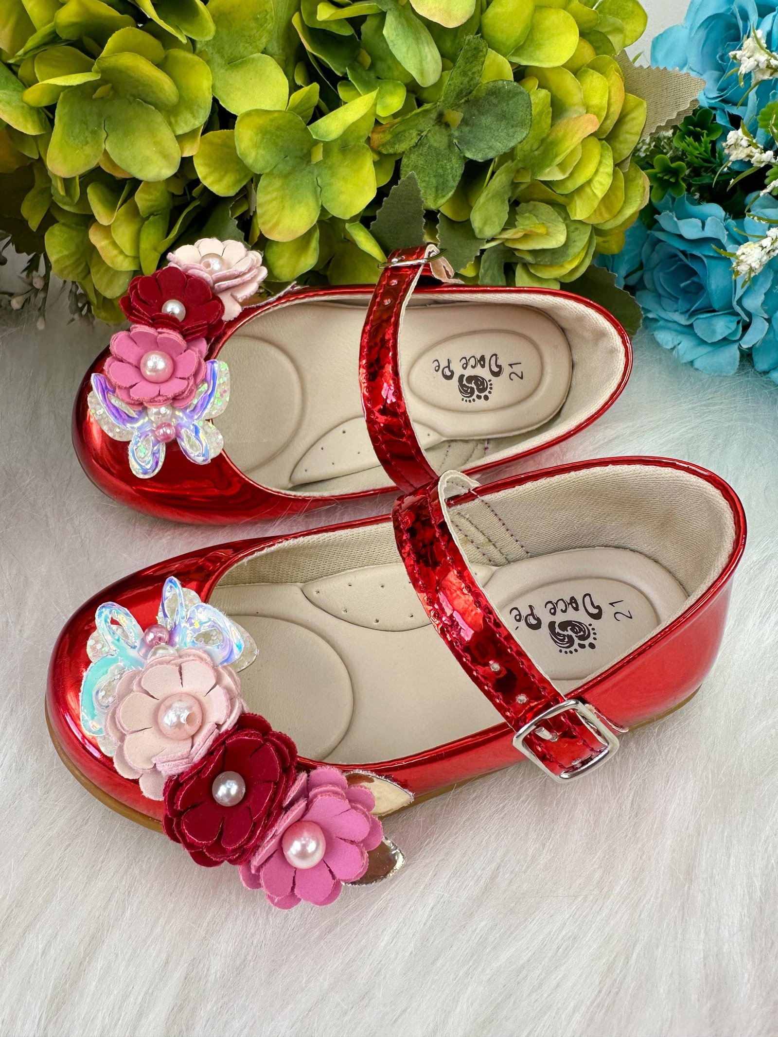 Sapatilha Doce Pe Juju Jardim Encantado Vermelha Metalizada