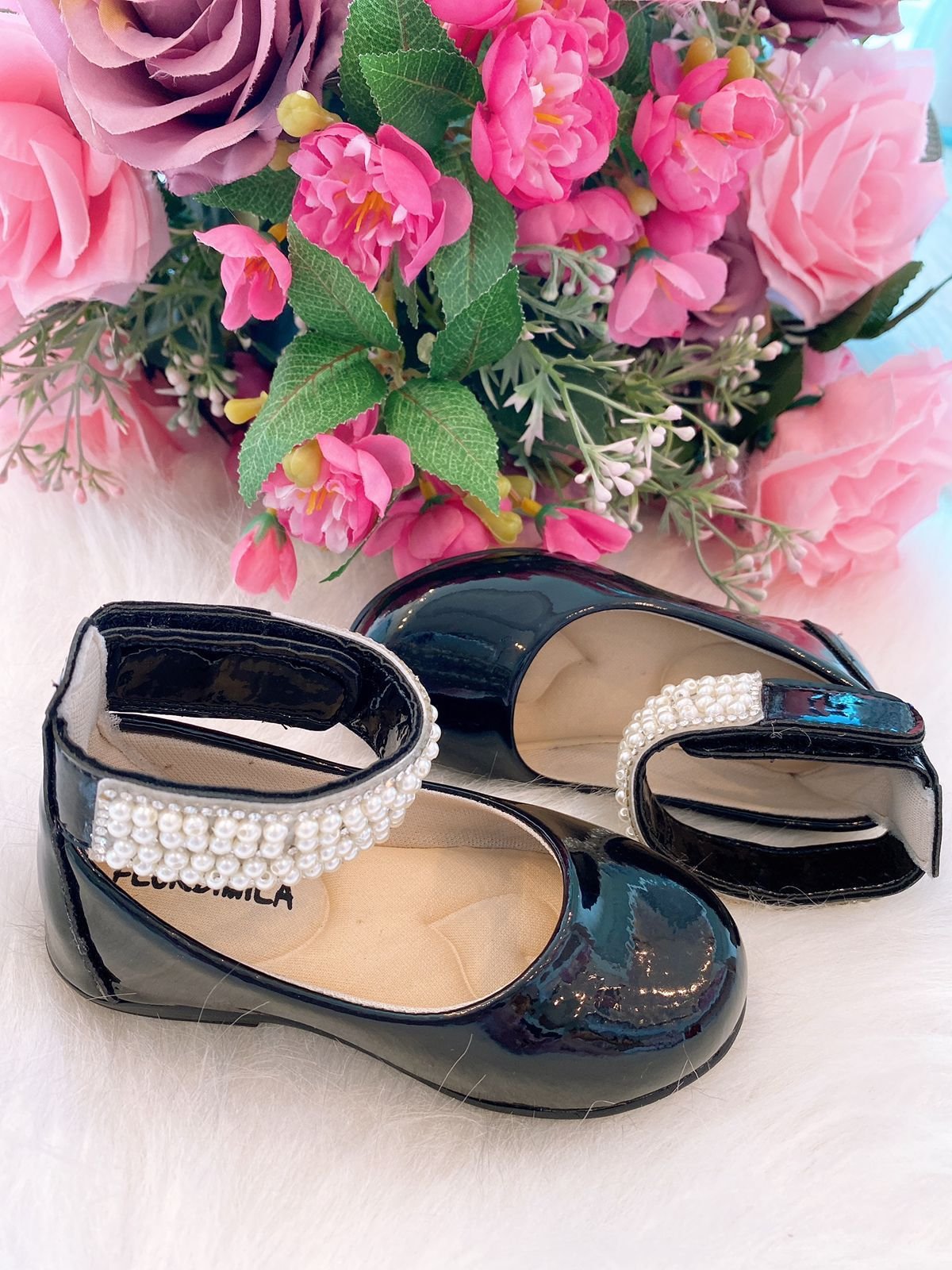 Sapatilha Flor Di Mila Camille Preta Pérolas