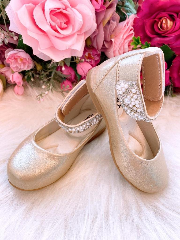 Sapatilha Flor di Mila Dourado “Perolas” Luxo