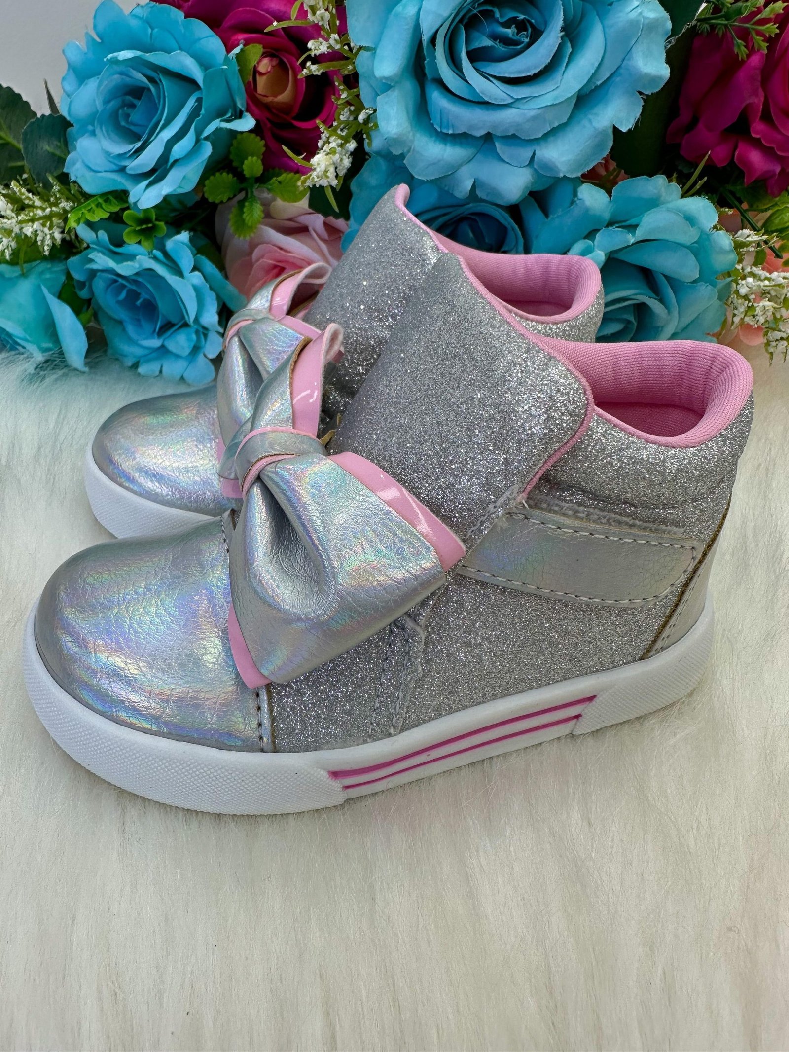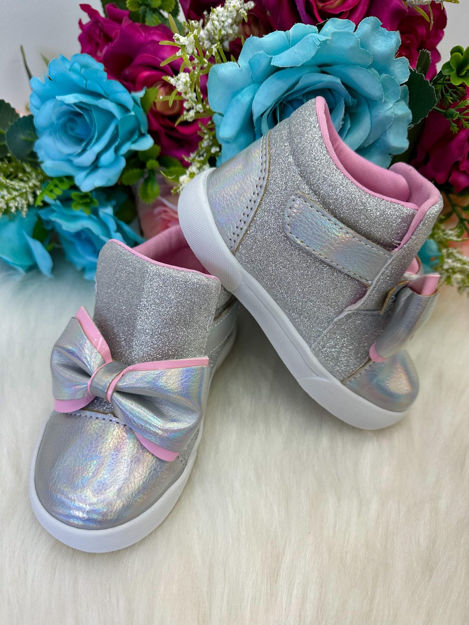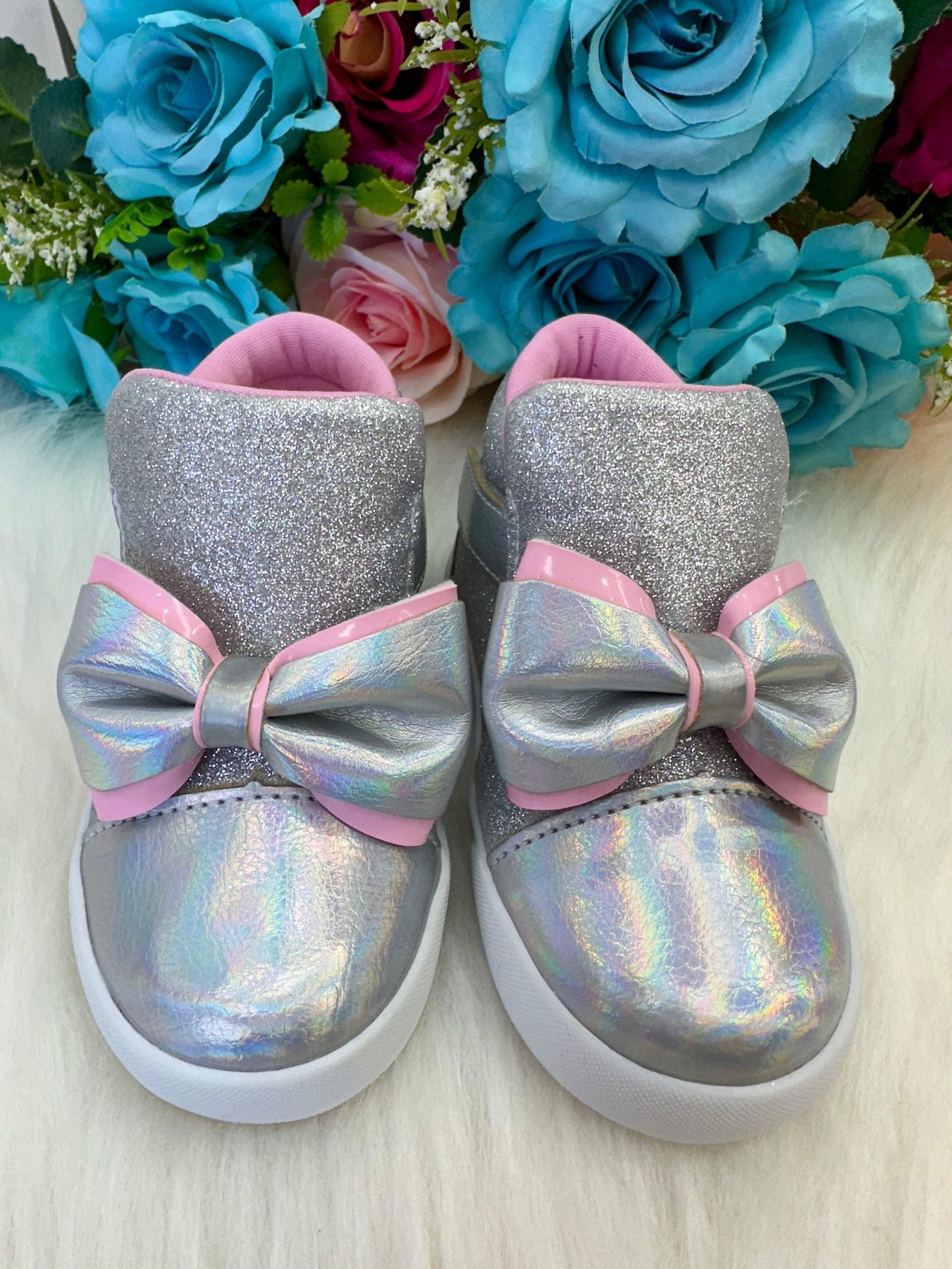 Tênis Bota Encanto de Criança Lacinho Prata Glitter Rebeca