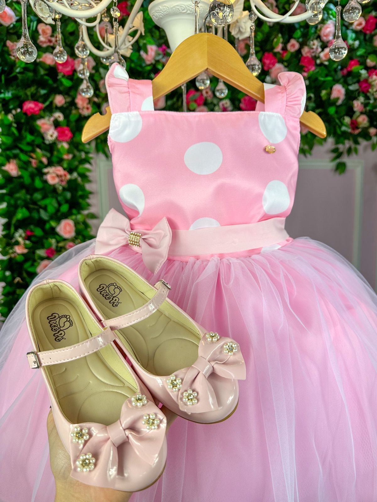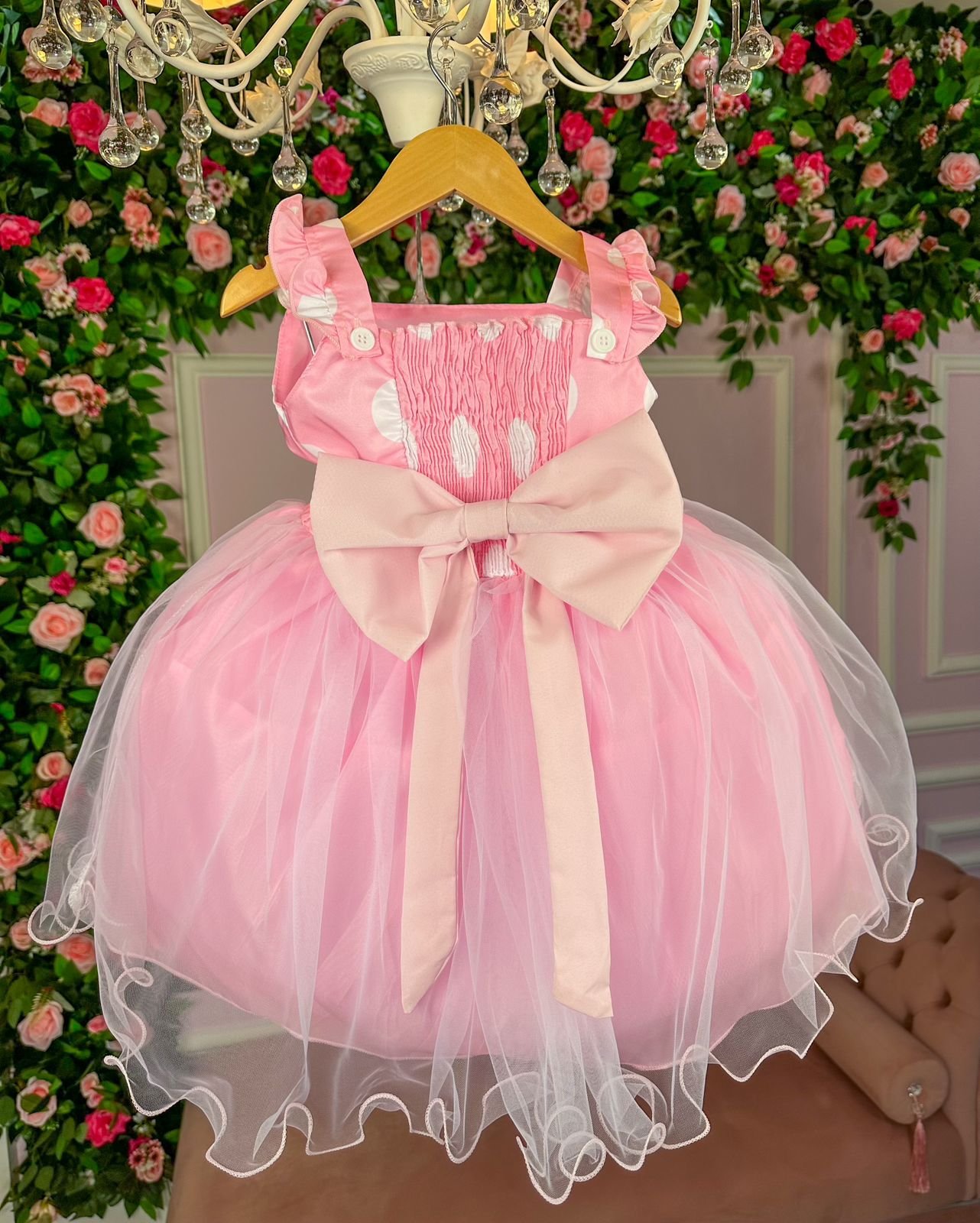 Confeccionado em tecido misto possui forro em poliéster e algodão para não incomodar a criança e proporcionando um caimento incrível e sofisticado, possui gola redonda, comprimento médio, mangas curtas, possui elástico nas costas para melhor ajuste, acabamento com lindo laço na parte posterior do vestido completa o look dos sonhos!