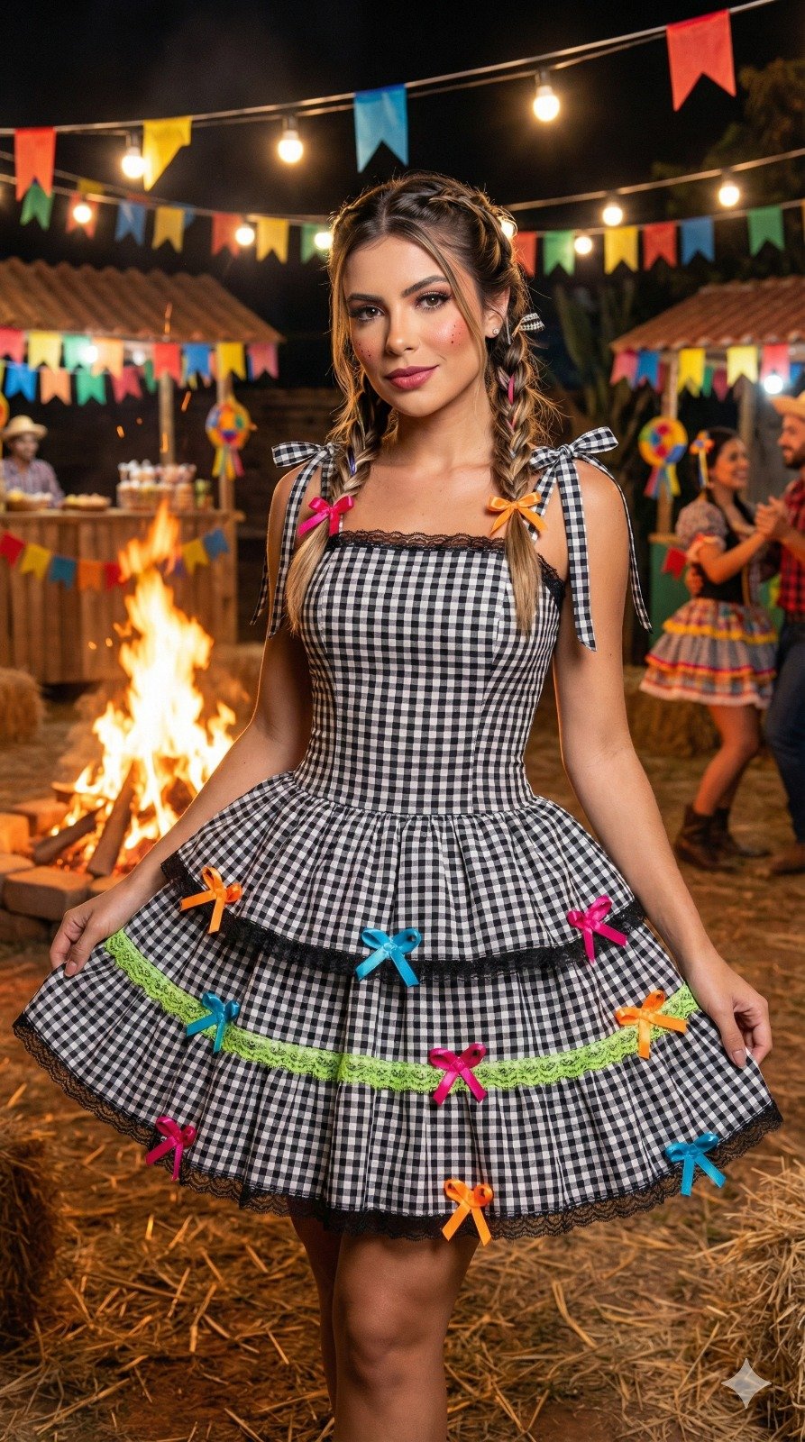 • Para um visual mais volumoso e armado, recomendamos o uso de saiote ou anágua de armação, disponíveis em nosso site na categoria Acessórios.
