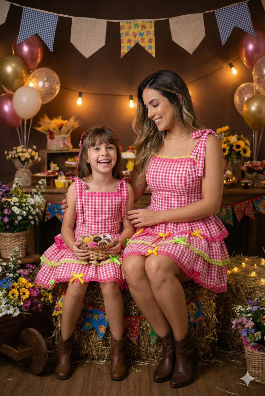 Vestido Banana Club Luxo Arraia do Chamego Mãe e Filha