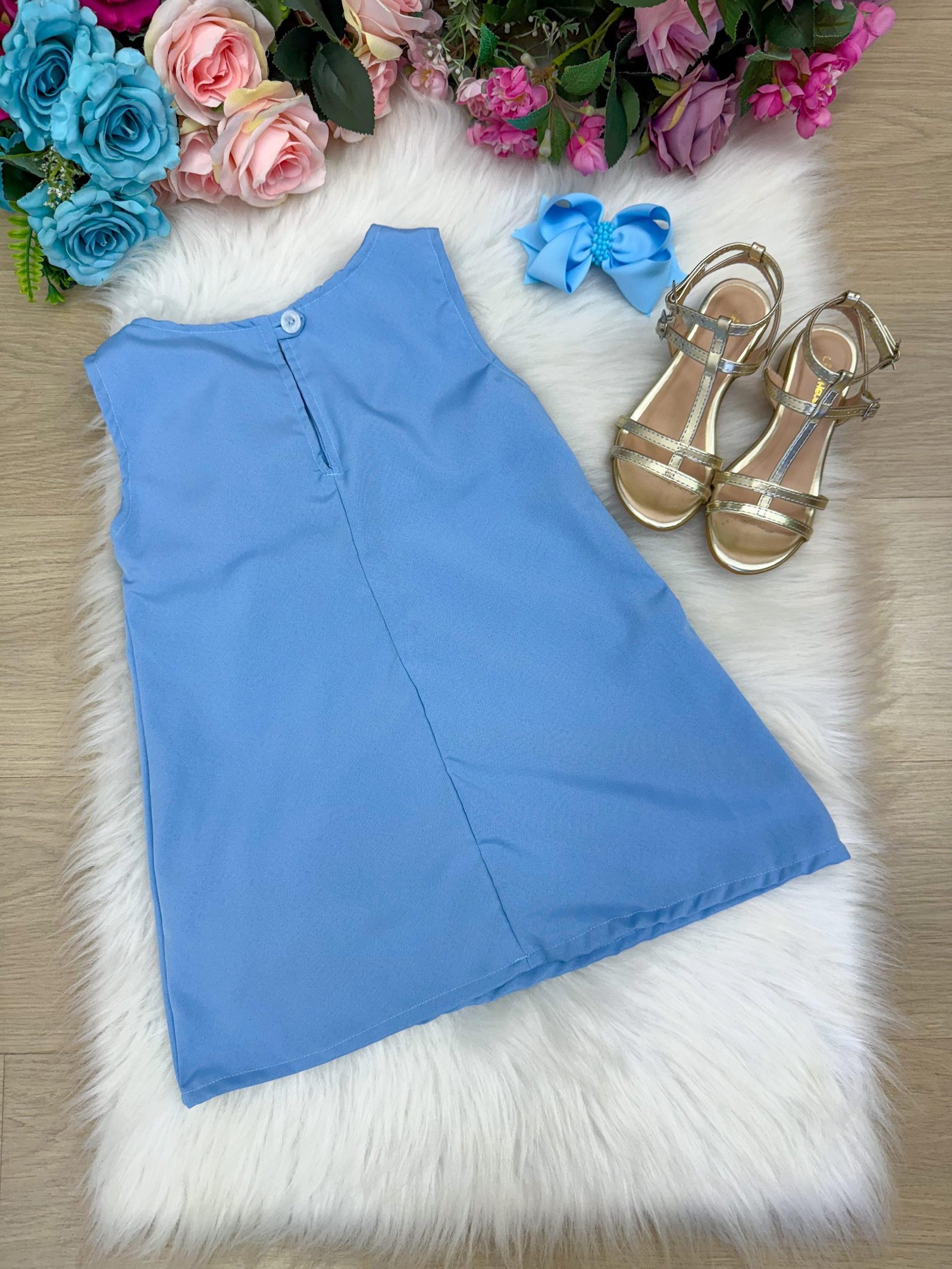 Confeccionado em tecido Light Basic proporcionando um caimento incrível e sofisticado, possui gola redonda, comprimento médio,sem manga possui elástico nas costas para melhor ajuste, completa o look dos sonhos!