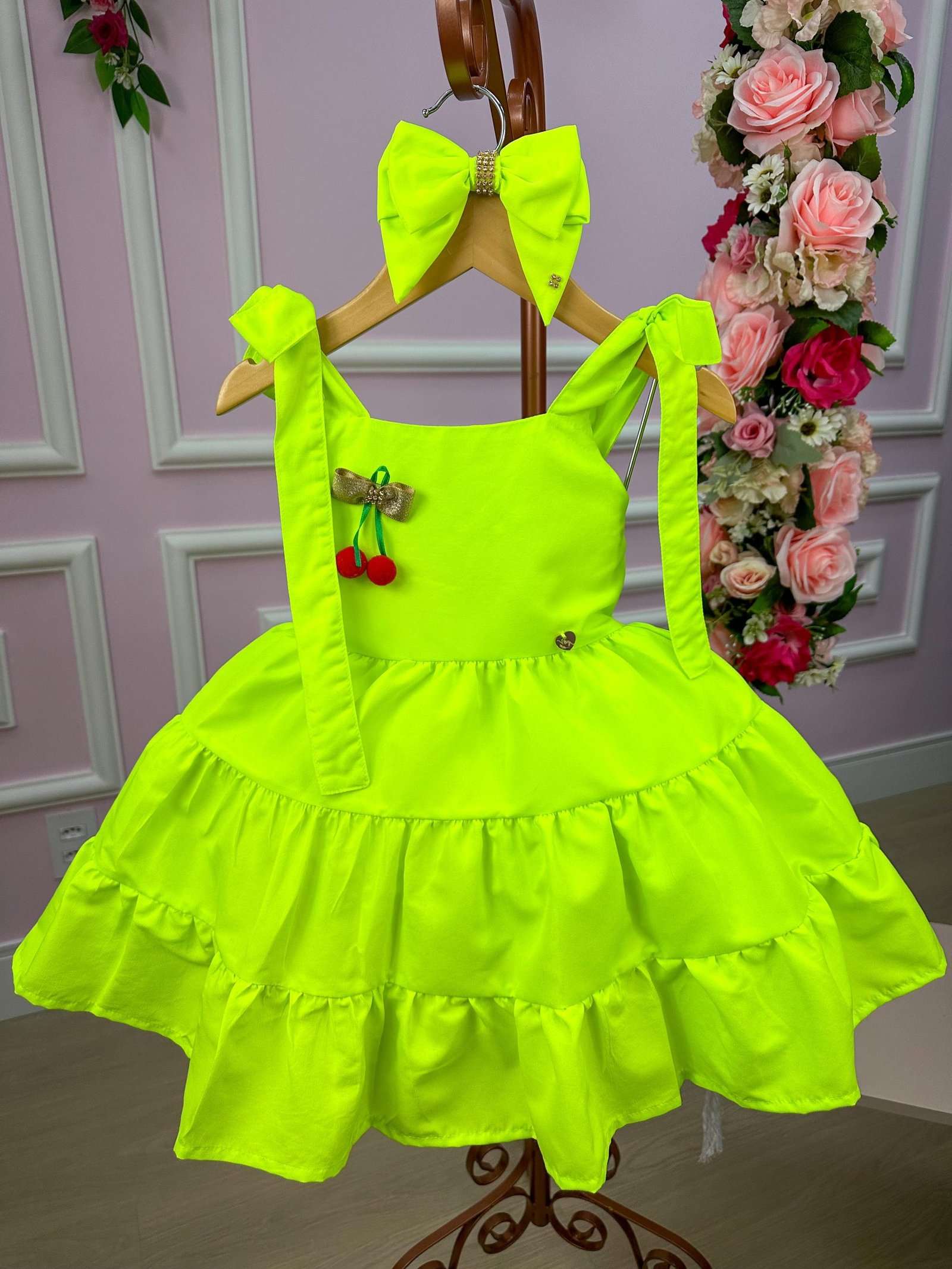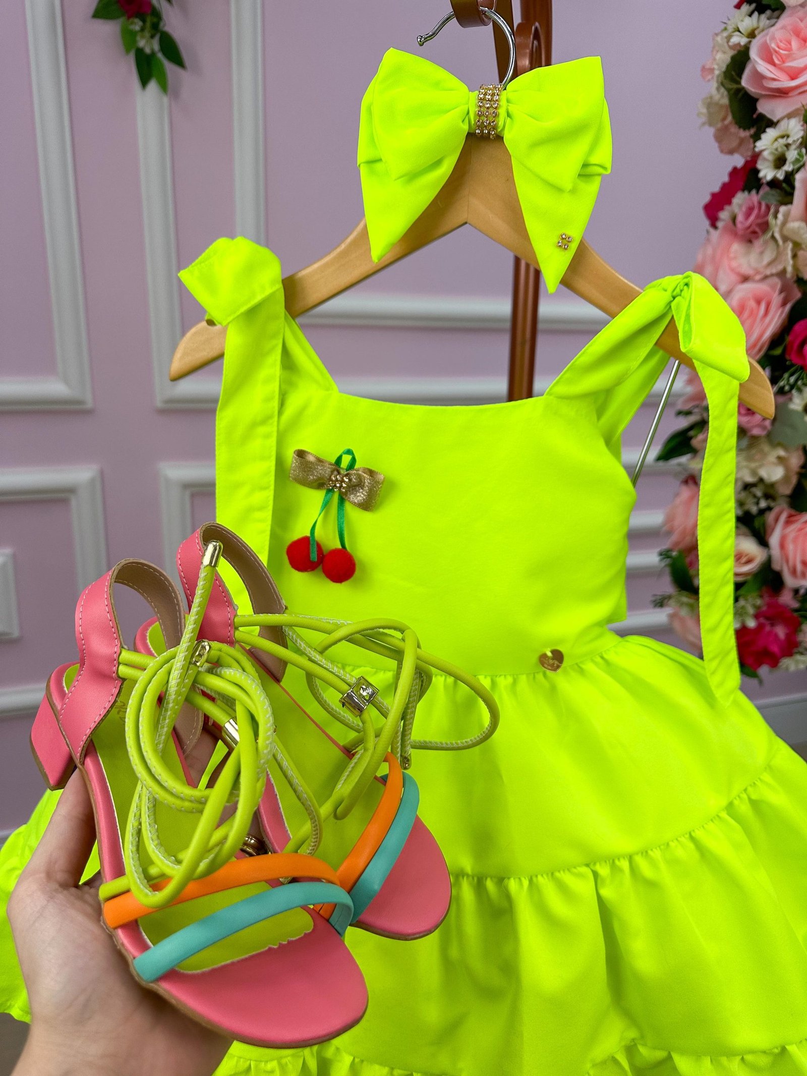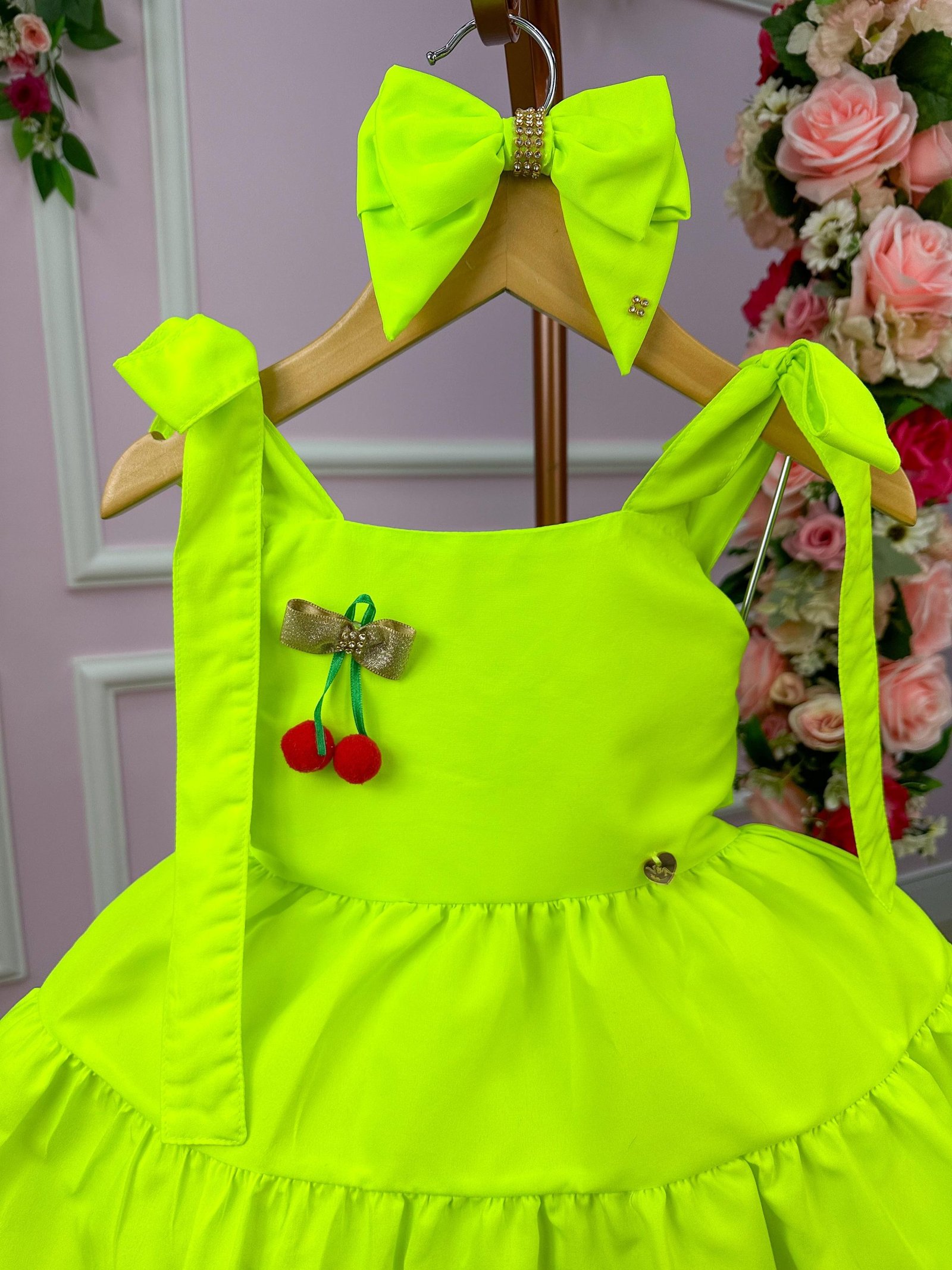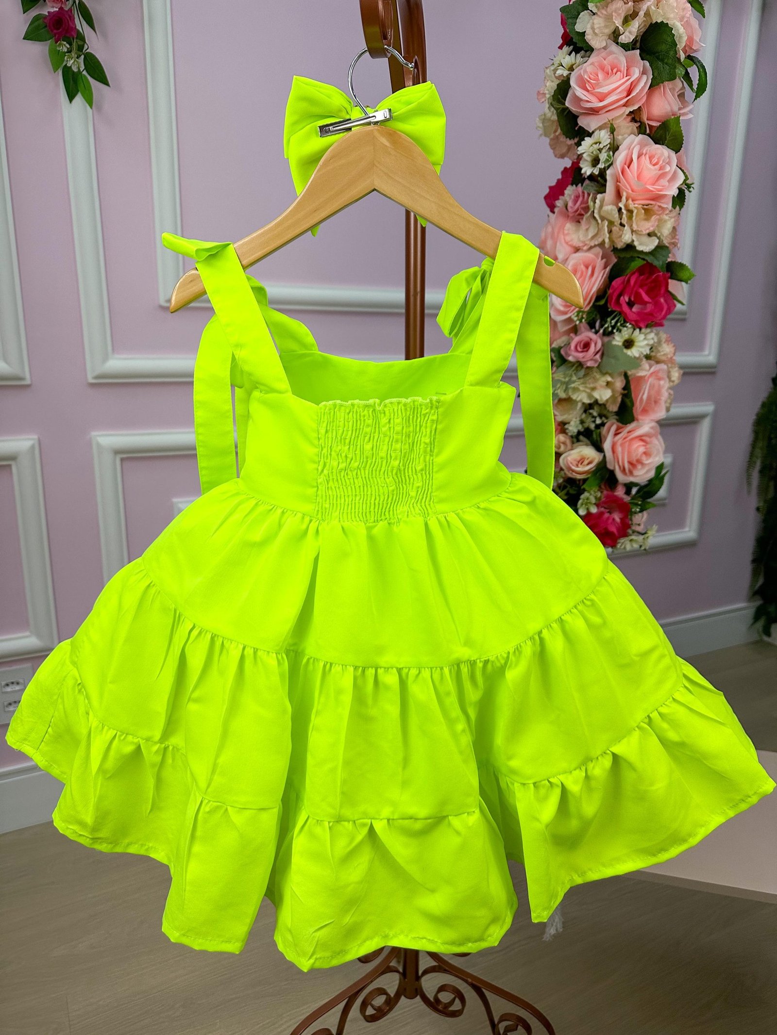 Confeccionado em tecido misto proporcionando um caimento incrível e sofisticado, possui gola redonda, comprimento médio, mangas curtas, possui elástico nas costas para melhor ajuste, acabamento com lindo laço na parte posterior do vestido completa o look dos sonhos!