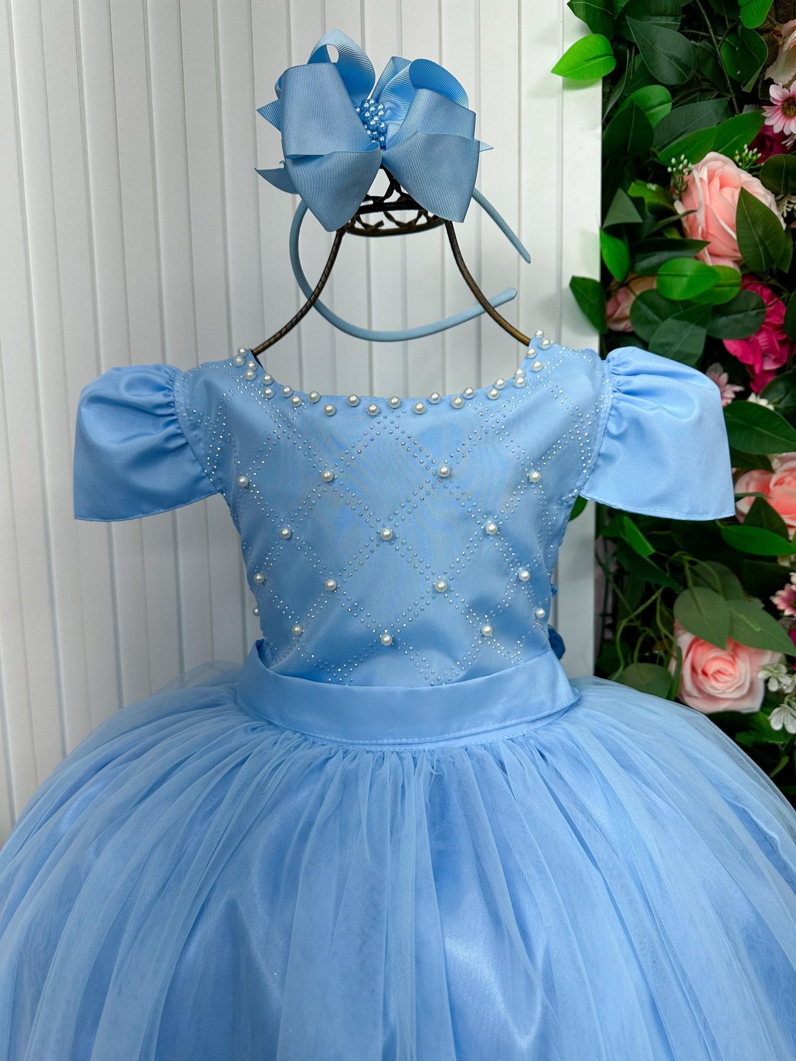 Esse modelo longo traz sofisticação e delicadeza, perfeito para brilhar em casamentos, festas de aniversário, batizados, formaturas e ensaios fotográficos.