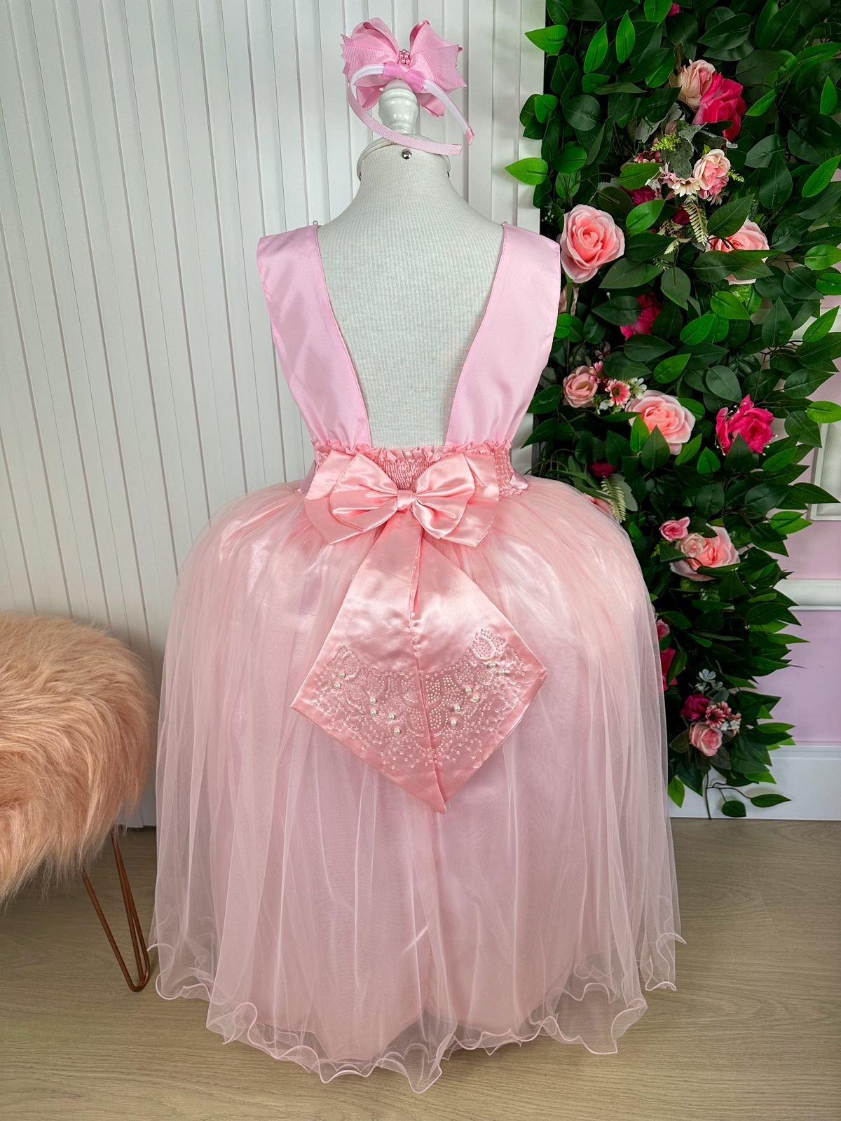 Um modelo sofisticado, cheio de elegância e encanto, perfeito para ocasiões especiais que pedem um look digno de princesa.