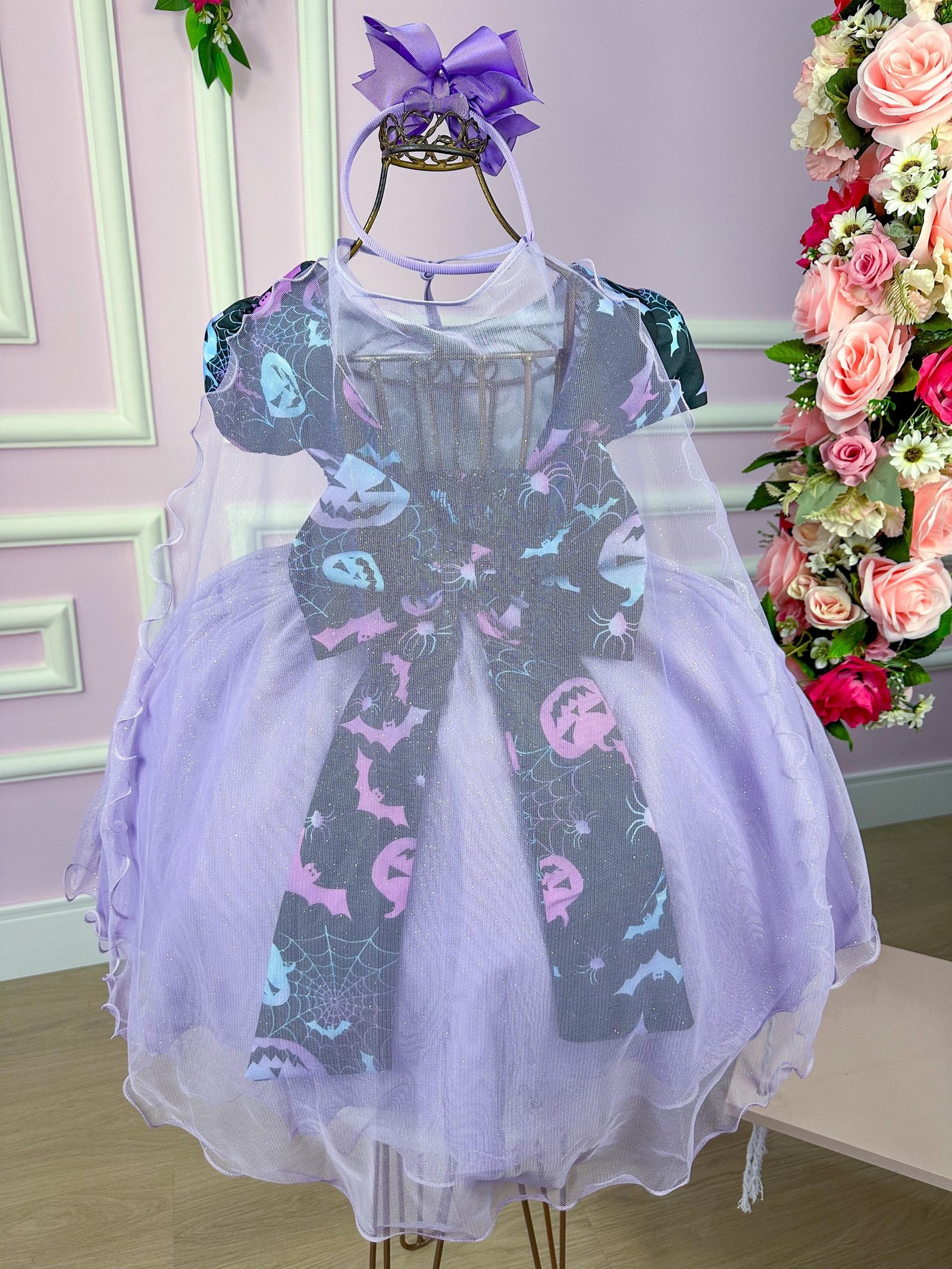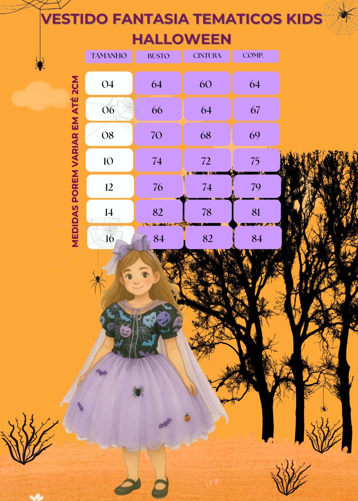 Confeccionado em tecido misto possui forro em poliéster e algodão para não incomodar a criança e proporcionando um caimento incrível e sofisticado, possui gola redonda, comprimento médio, mangas curtas, apliques de aranhas, possui elástico nas costas para melhor ajuste, acabamento com lindo laço na parte posterior do vestido completa o look dos sonhos!