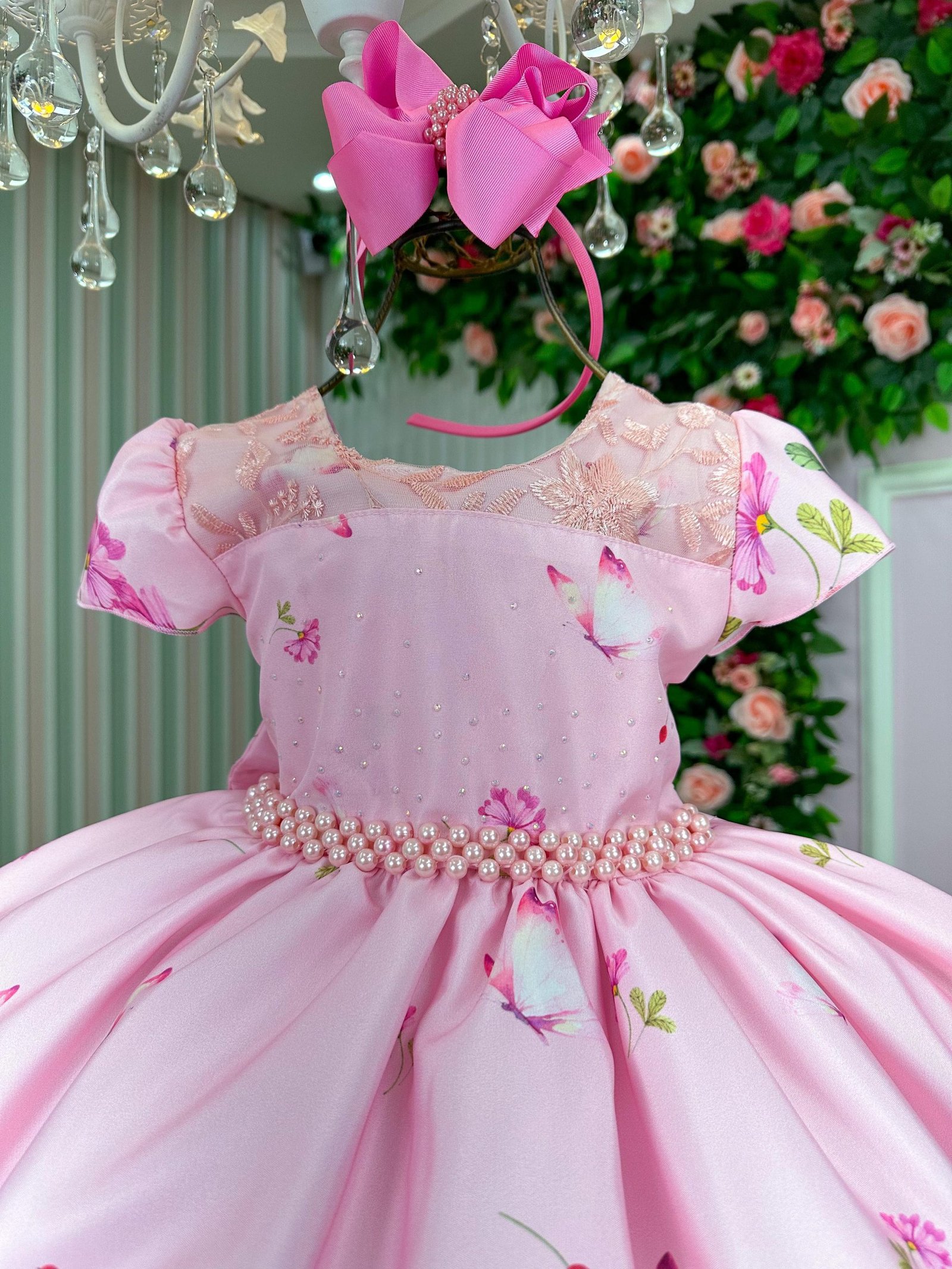 Confeccionado em tecido misto possui forro em poliéster e algodão para não incomodar a criança e proporcionando um caimento incrível e sofisticado, possui gola redonda, comprimento médio, mangas curtas de tule, possui elástico nas costas para melhor ajuste, acabamento com lindo laço na parte posterior do vestido completa o look dos sonhos!