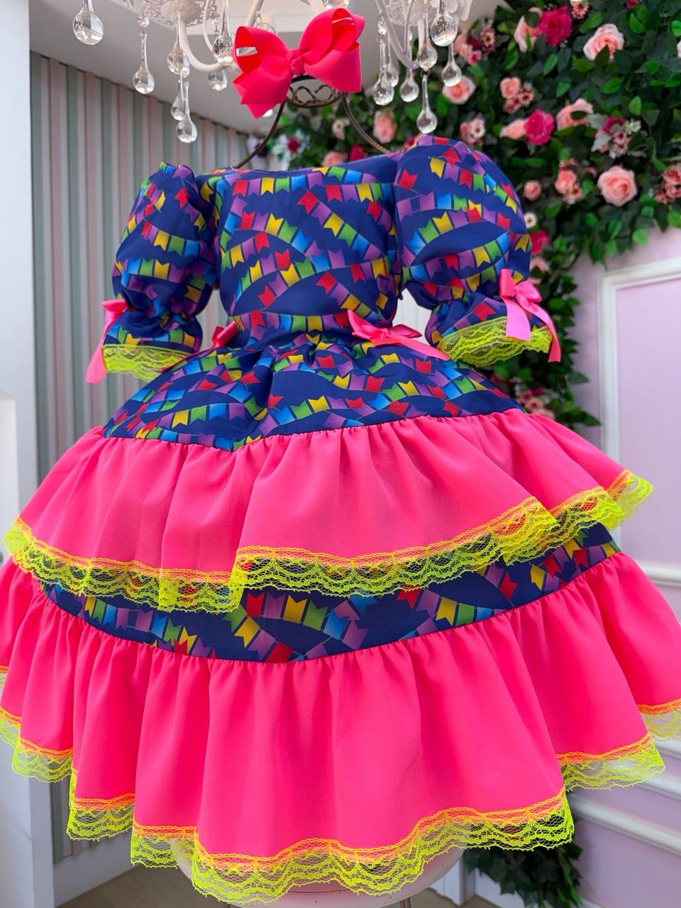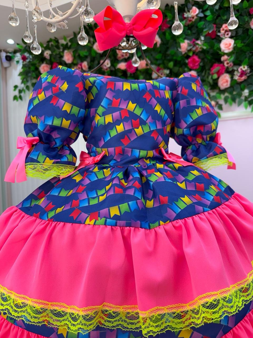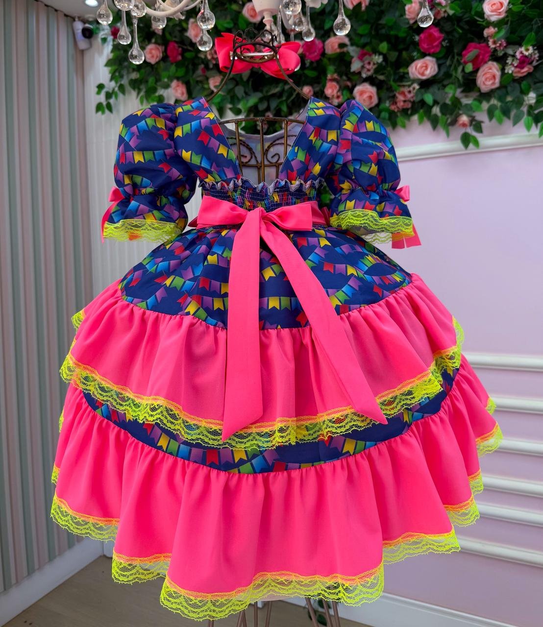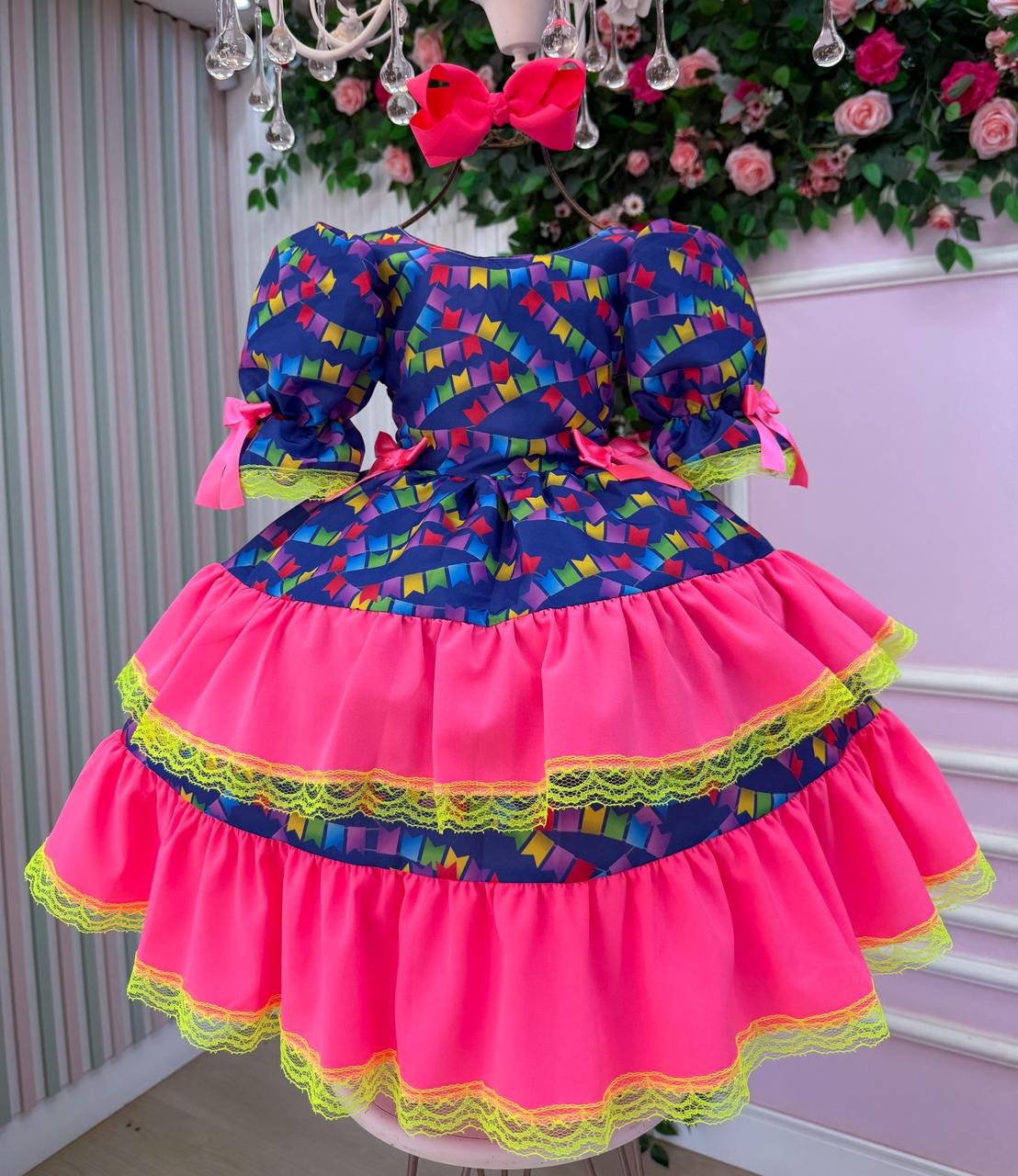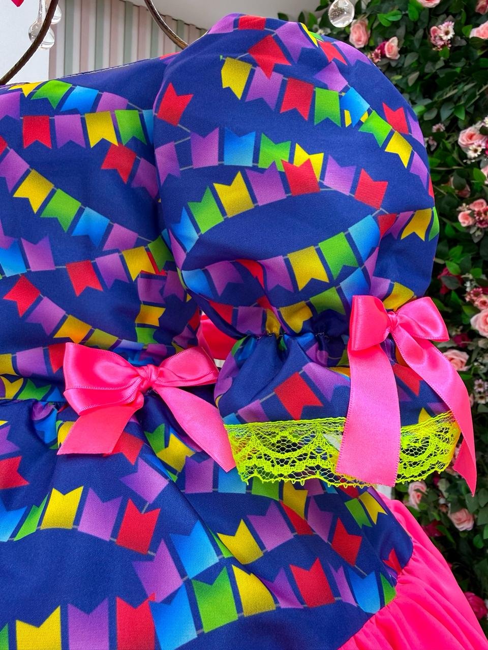 Vestido Junino Banana Club Luxo Bandeirinha do Amor