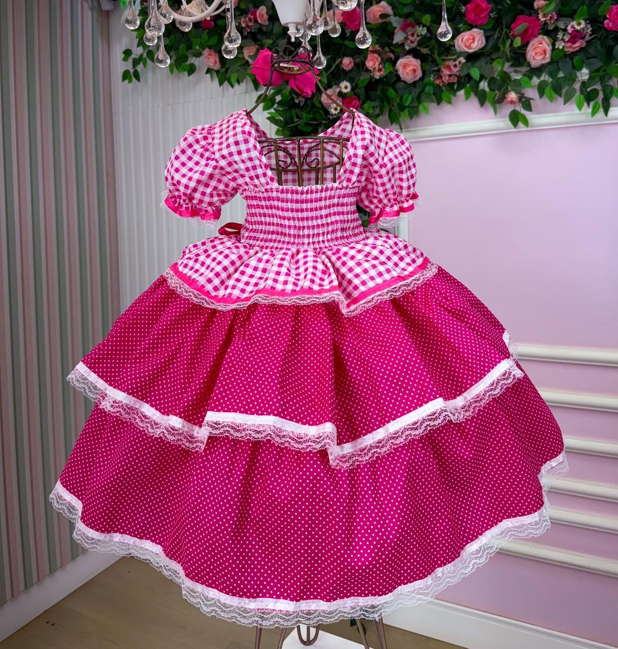 Confeccionado em tecido Tecnosport, esse vestido oferece um caimento impecável, sofisticado e confortável, perfeito para as comemorações mais queridas do ano. Um modelo que une o clássico das festas juninas com acabamento delicado e bem estruturado.