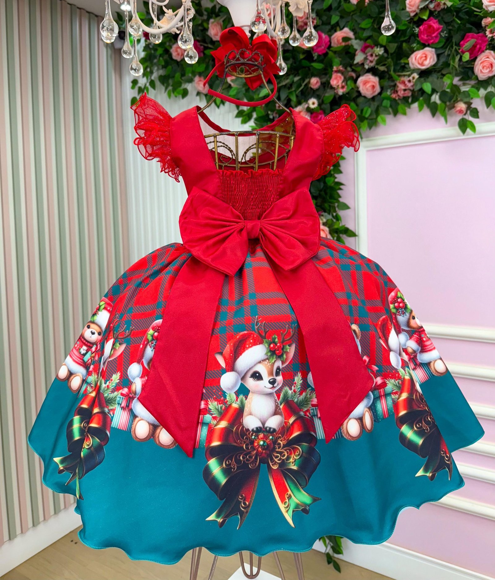 Um vestido cheio de charme e magia, perfeito para celebrar o Natal com estilo e delicadeza. Confeccionado com materiais de qualidade e detalhes encantadores, ele transforma qualquer momento em um verdadeiro conto natalino.