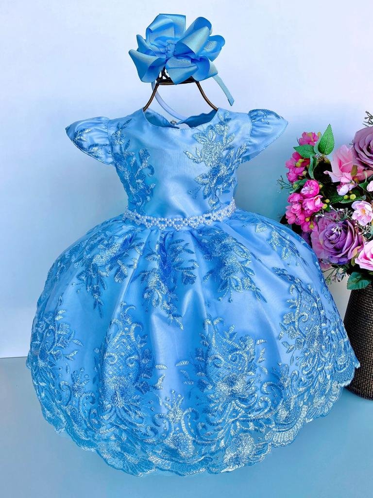 Confeccionado em tecido misto possui forro em poliéster e algodão para não machucar a criança e proporcionando um caimento incrível e sofisticado, possui gola redonda, comprimento médio, mangas curtas, possui elástico nas costas para melhor ajuste, acabamento com lindo laço na parte posterior do vestido completa o look dos sonhos!