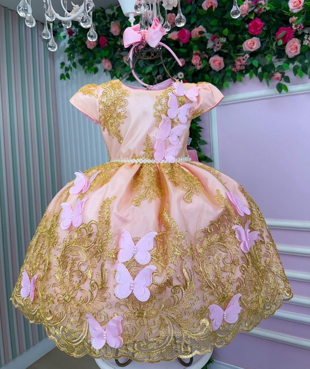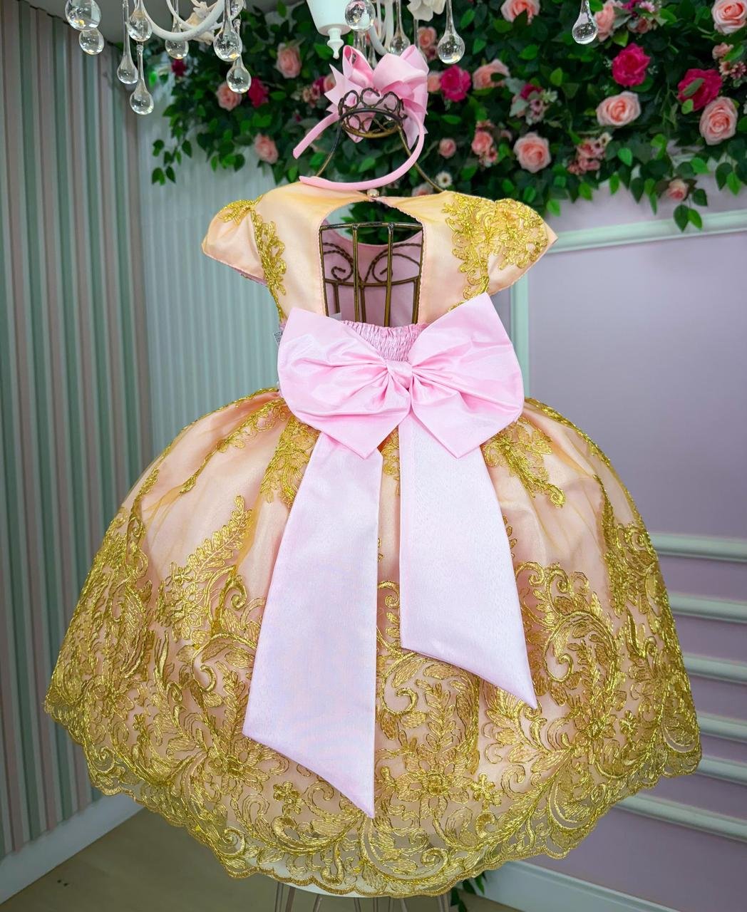 Confeccionado em tecido misto possui forro em poliéster e algodão para não incomodar a criança e proporcionando um caimento incrível e sofisticado, possui gola redonda, comprimento médio, mangas curtas, possui elástico nas costas para melhor ajuste, acabamento com lindo laço na parte posterior do vestido completa o look dos sonhos!