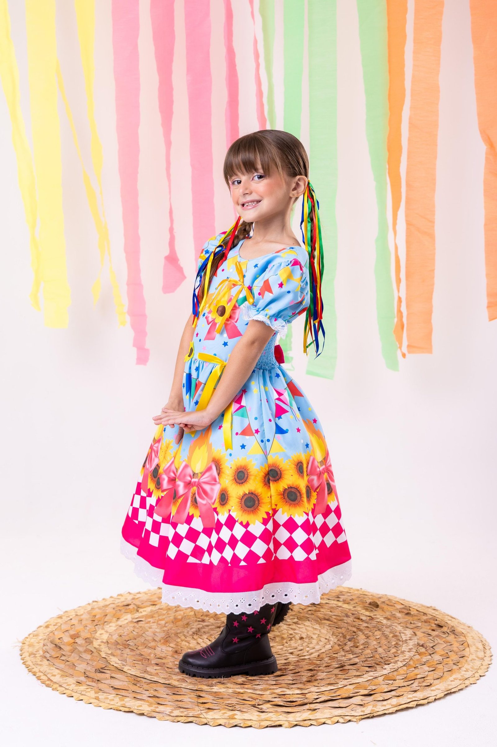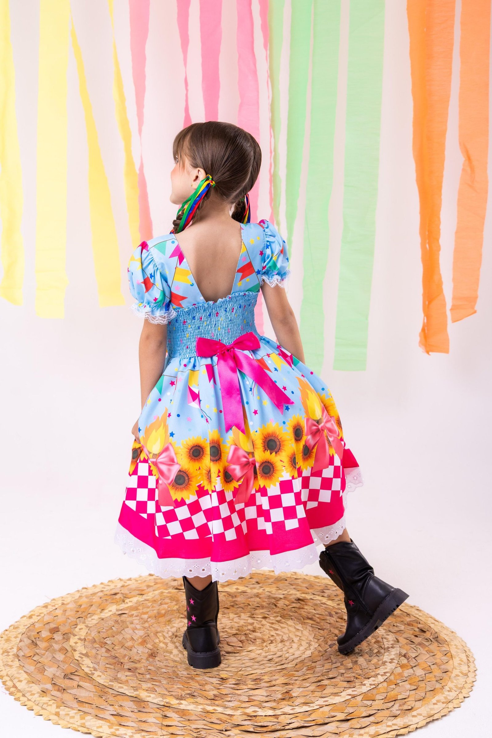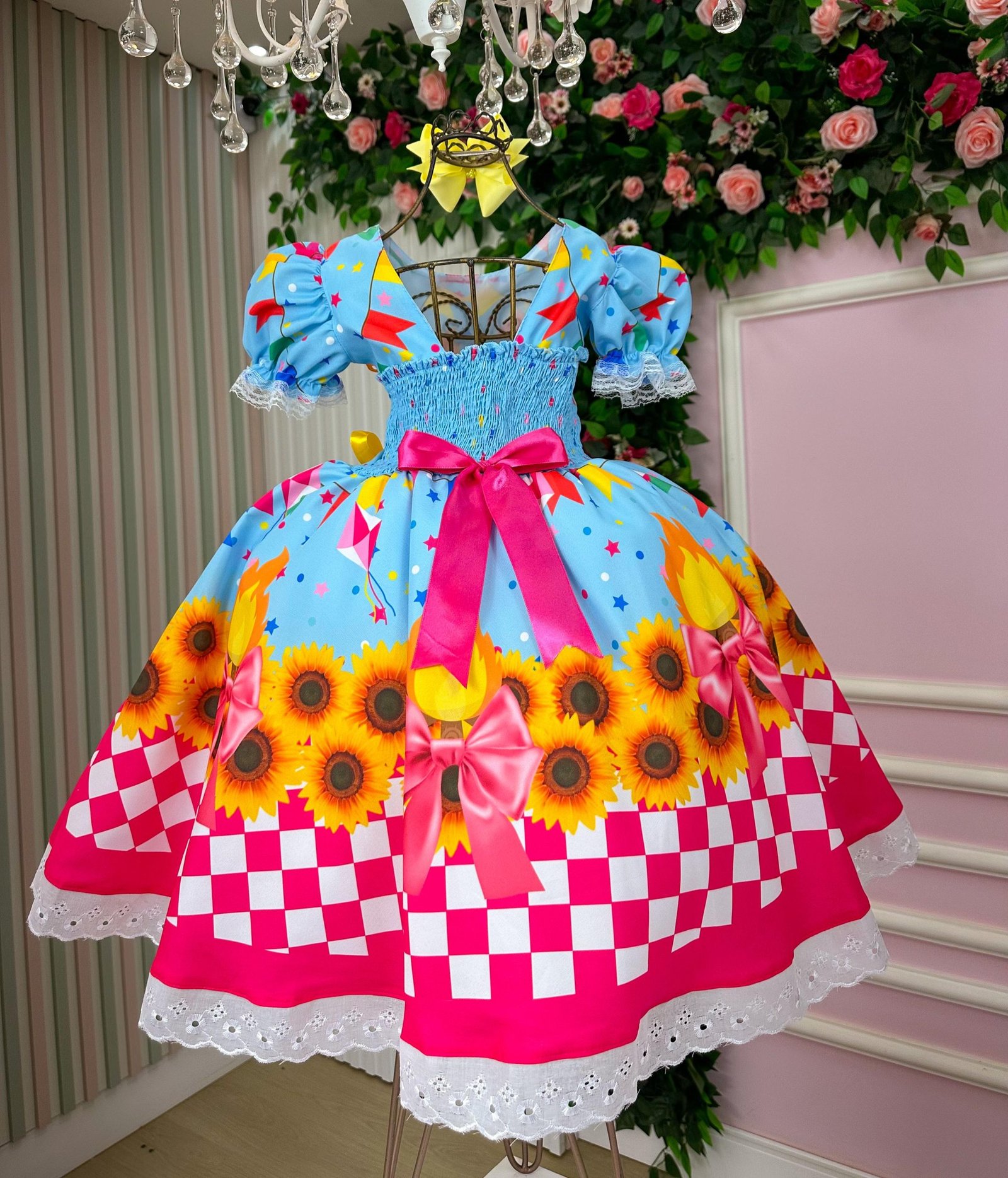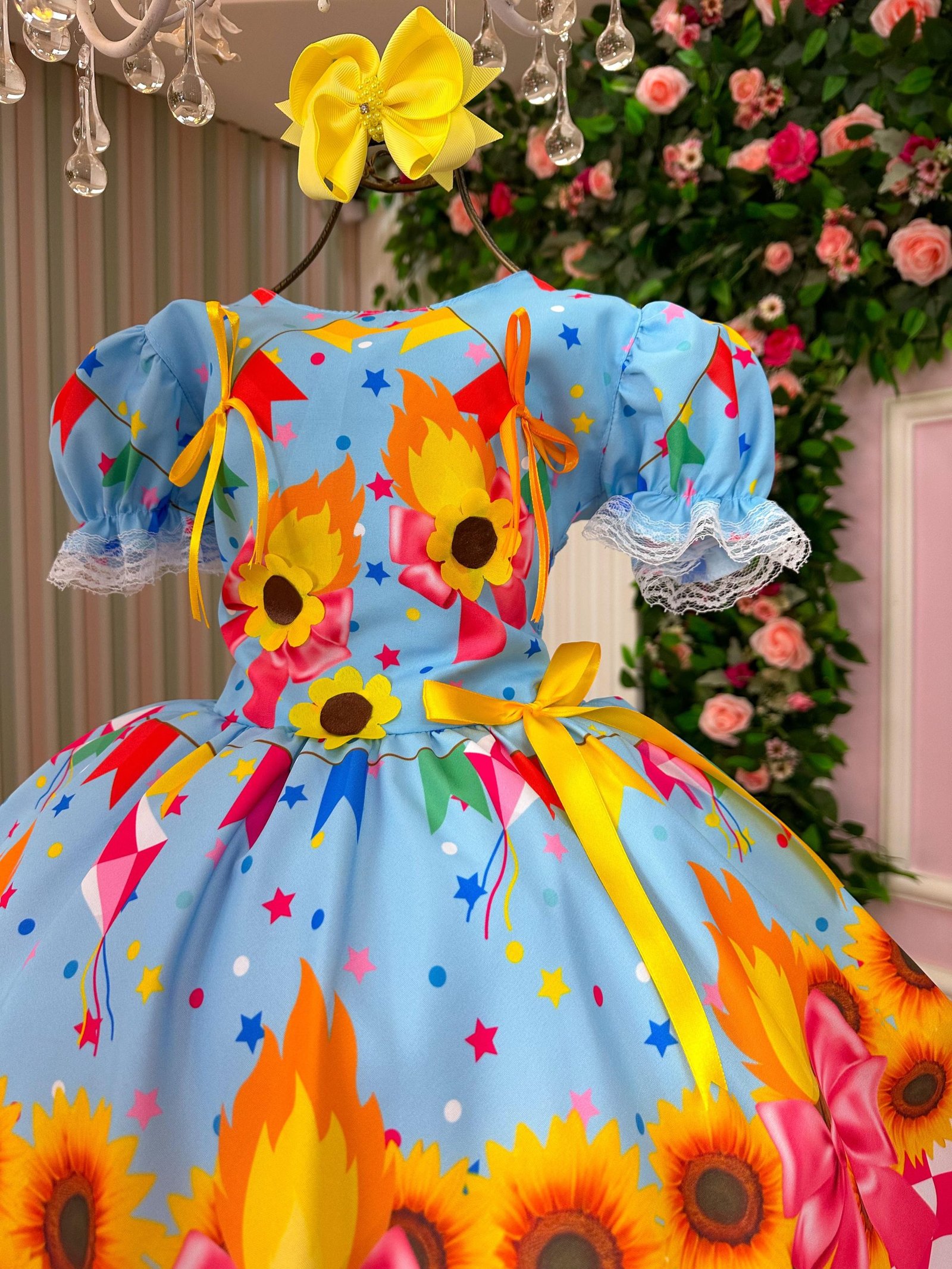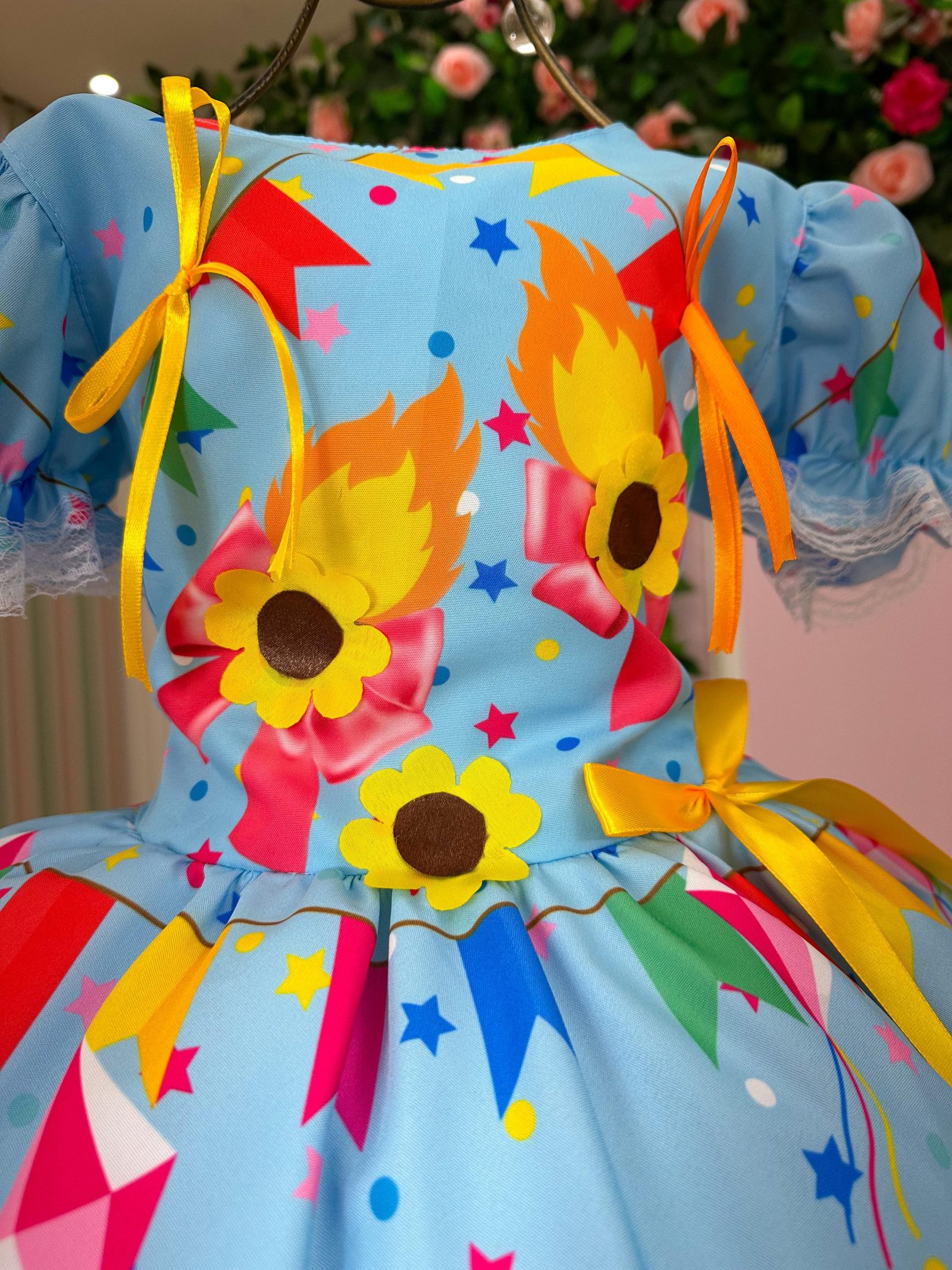 Vestido Marie Junino Luxo Quadrilha das Estrelas Azul