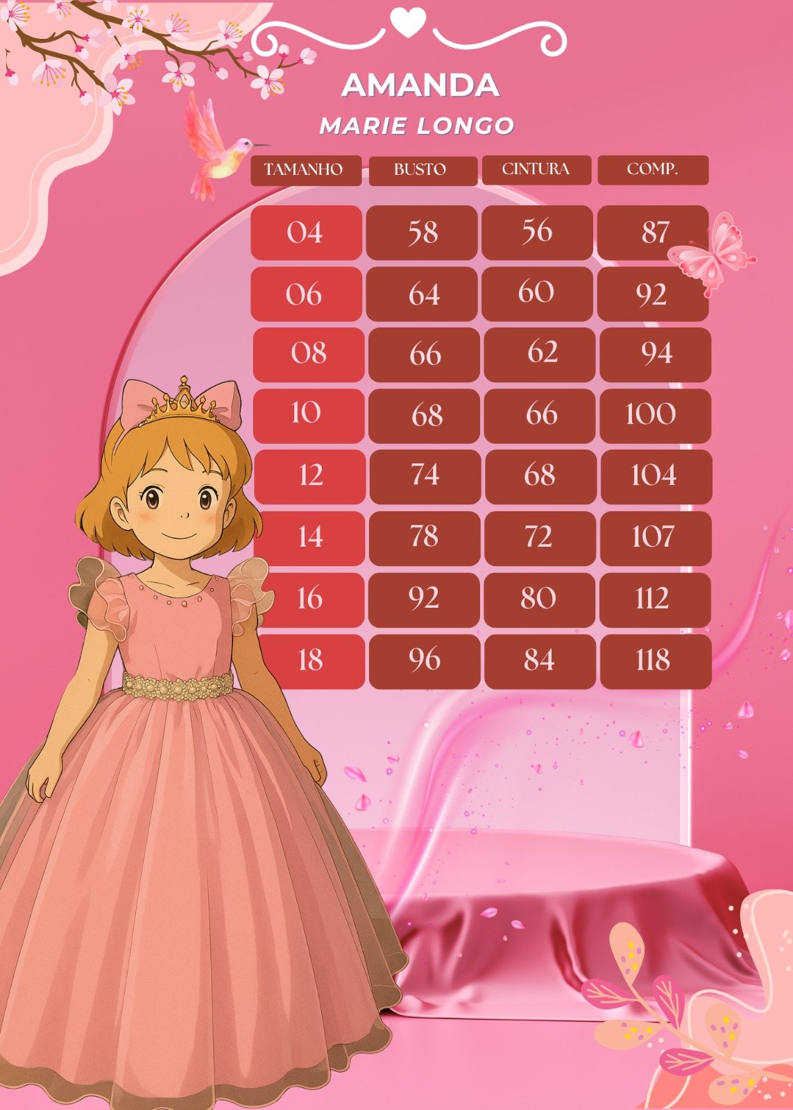 Tiara e outros acessórios não acompanham o produto, mas estão disponíveis em nosso site.