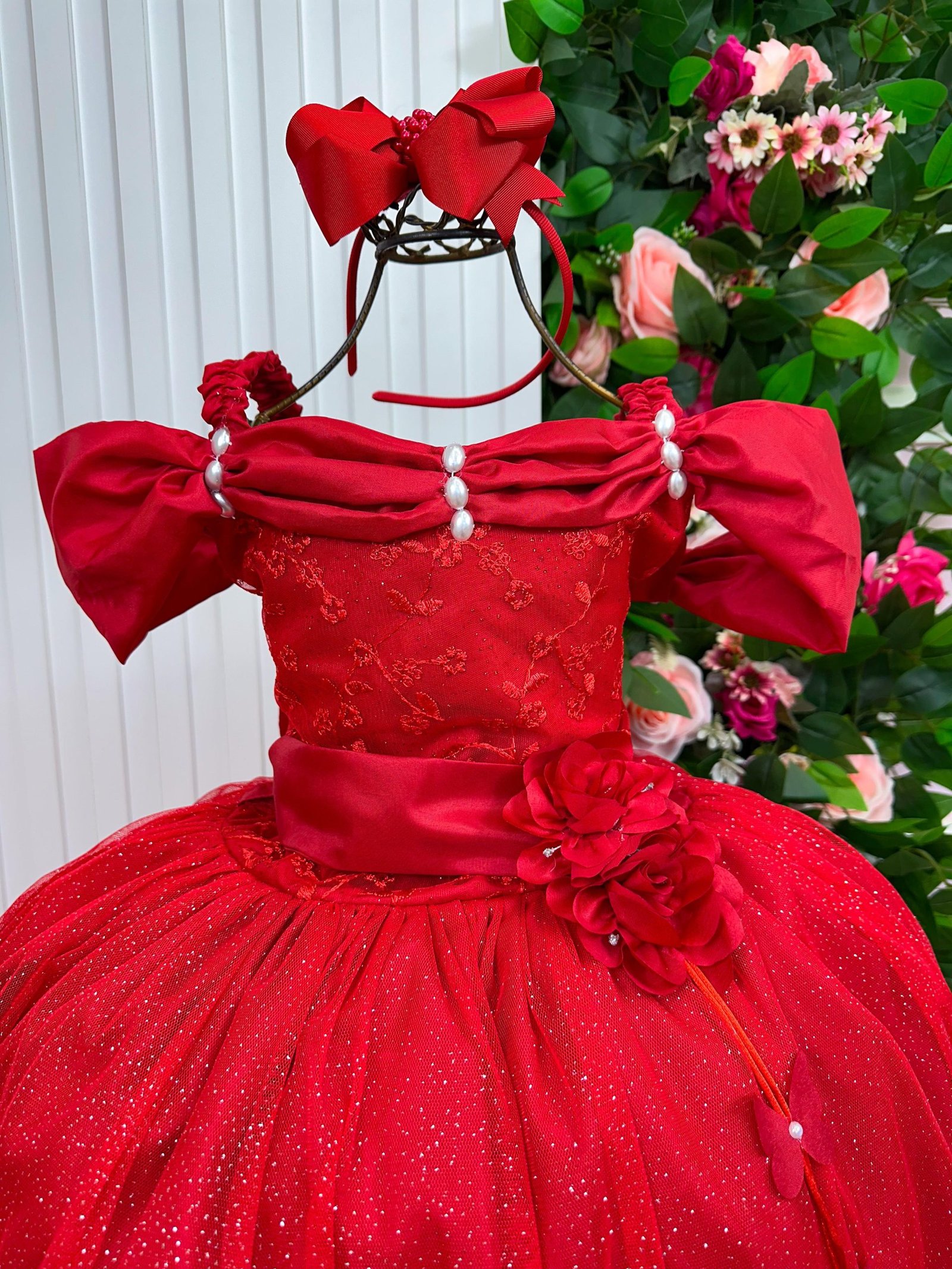 Confeccionado em tecido misto possui forro em poliéster e algodão para não incomodar a criança e proporcionando um caimento incrível e sofisticado, possui gola redonda, comprimento médio, mangas curtas, possui elástico nas costas para melhor ajuste, acabamento com lindo laço na parte posterior do vestido completa o look dos sonhos!