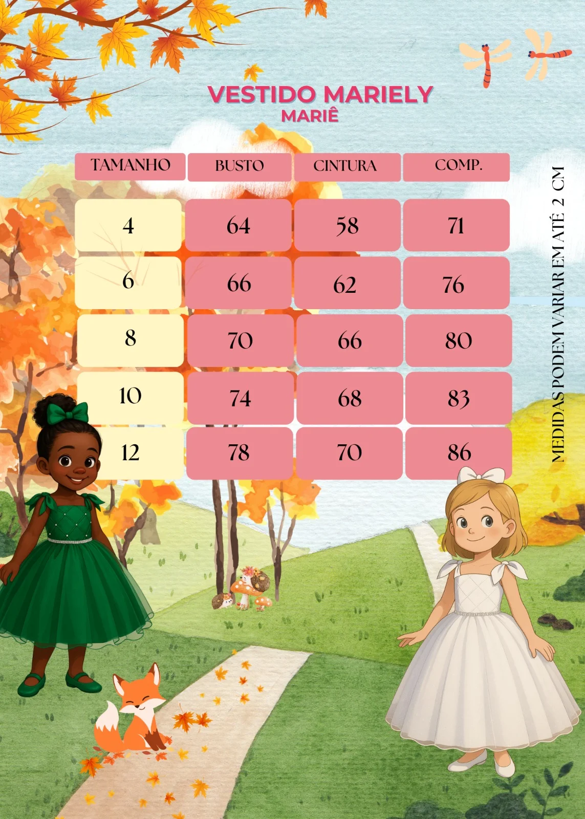 - As medidas podem variar em até 2cm. Recomendamos sempre consultar a tabela de medidas antes da compra para evitar erros.