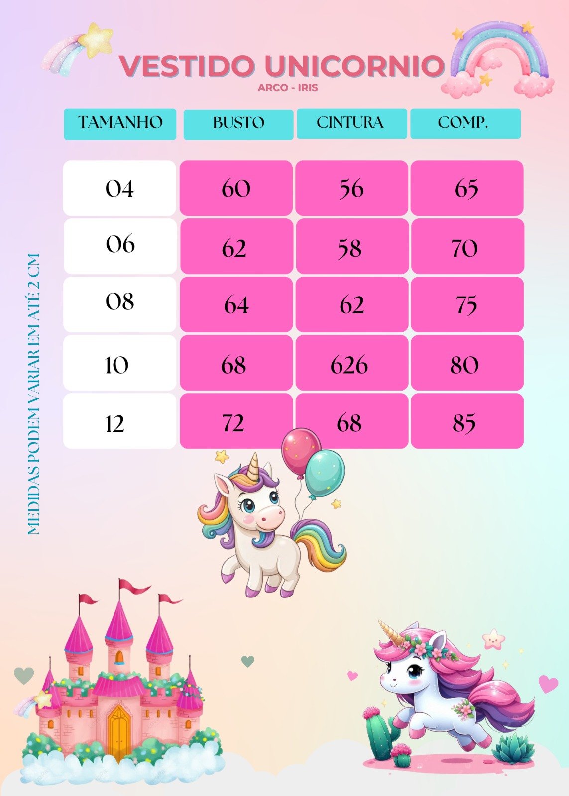 * Medidas podem variar em até 4cm