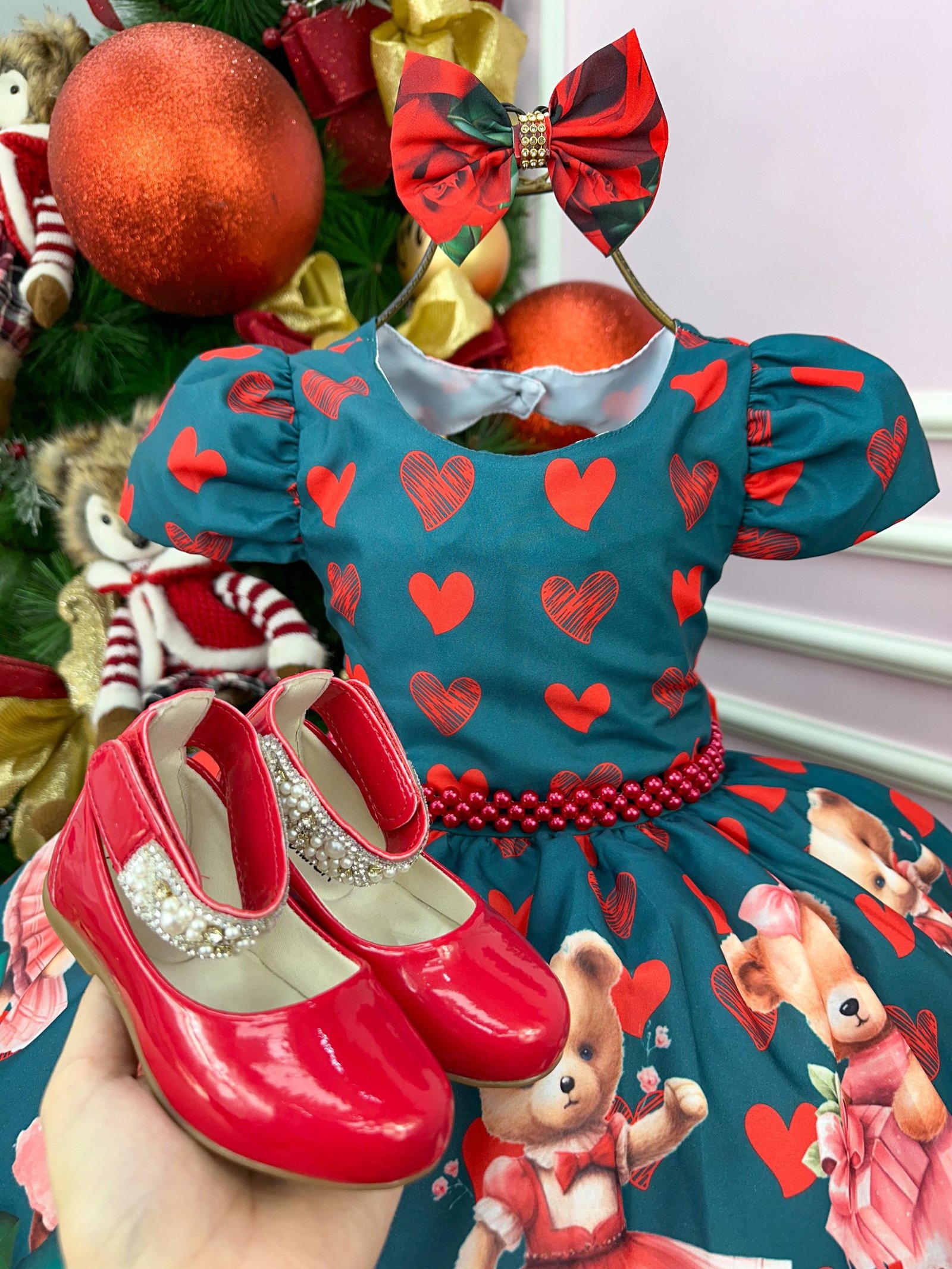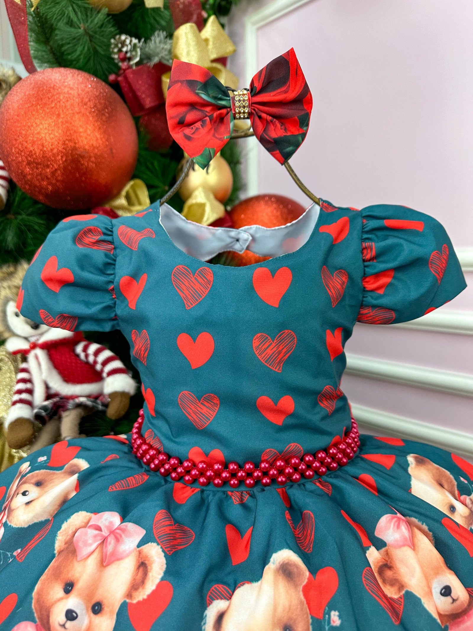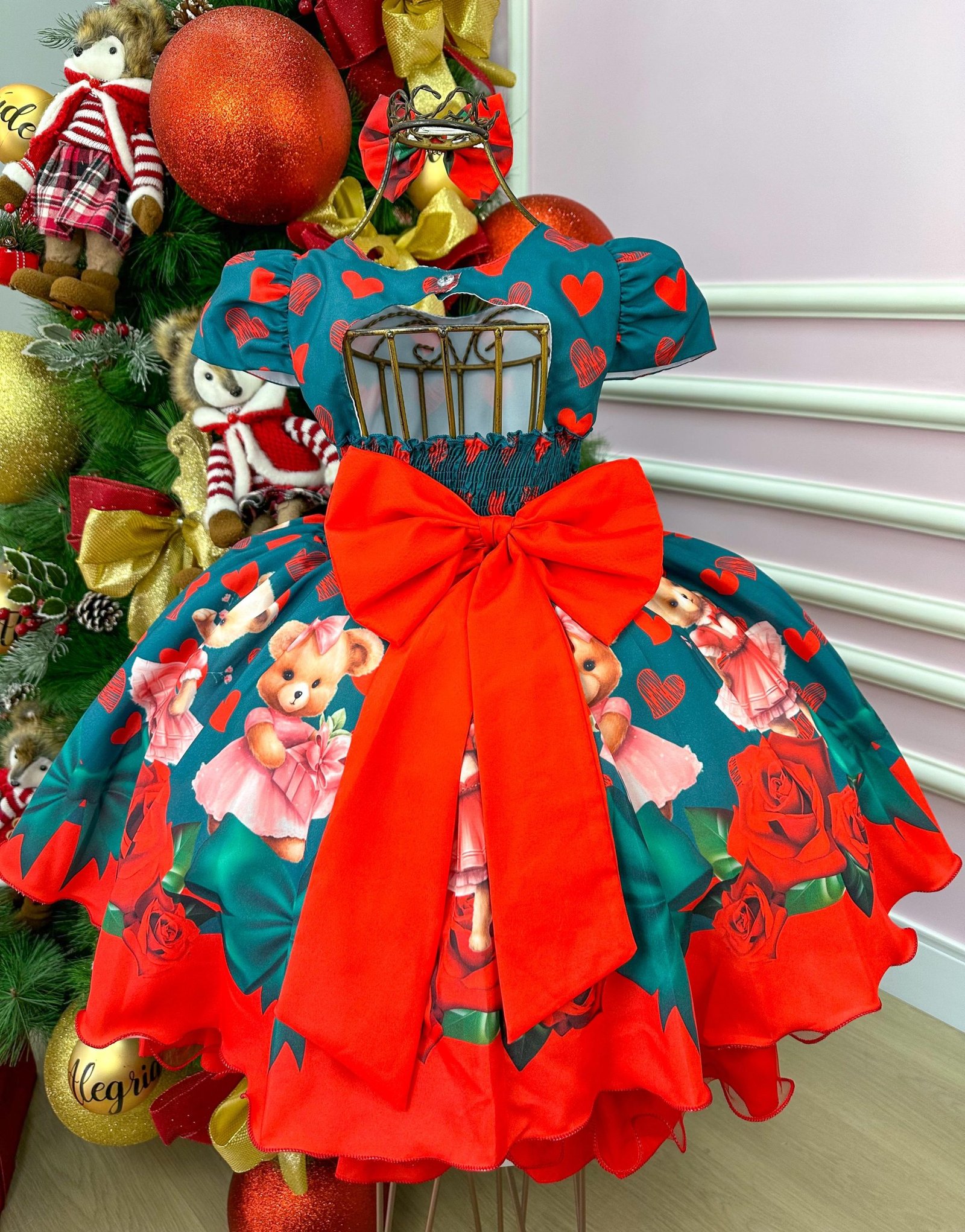 Confeccionado em tecido misto possui forro em poliéster e algodão para não incomodar a criança e proporcionando um caimento incrível e sofisticado, possui gola redonda, comprimento médio, mangas curtas, possui elástico nas costas para melhor ajuste, acabamento com lindo laço na parte posterior do vestido completa o look dos sonhos!