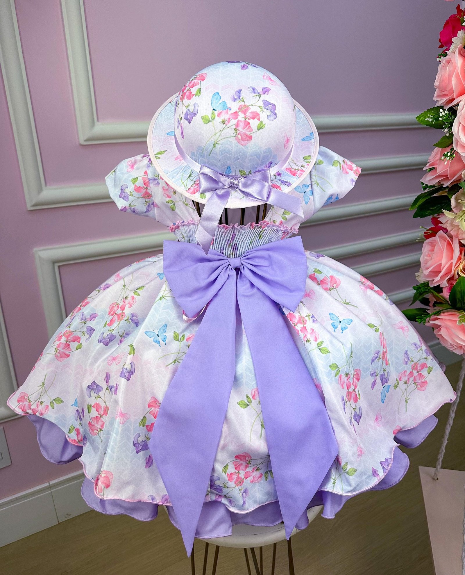 Confeccionado em tecido misto possui forro em poliéster e algodão para não incomodar a criança e proporcionando um caimento incrível e sofisticado, possui gola redonda, comprimento médio, mangas curtas, possui elástico nas costas para melhor ajuste, acabamento com lindo laço na parte posterior do vestido completa o look dos sonhos!