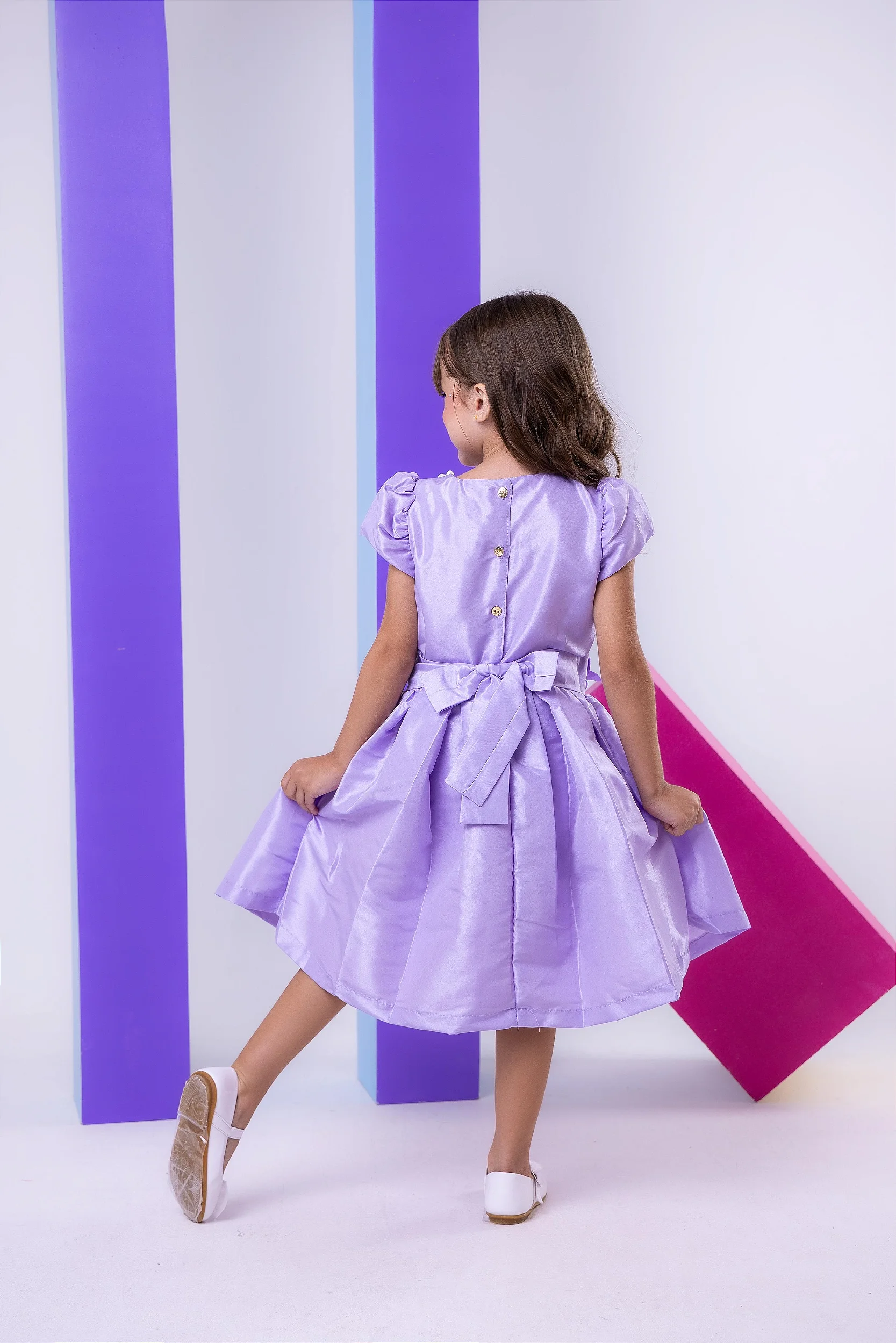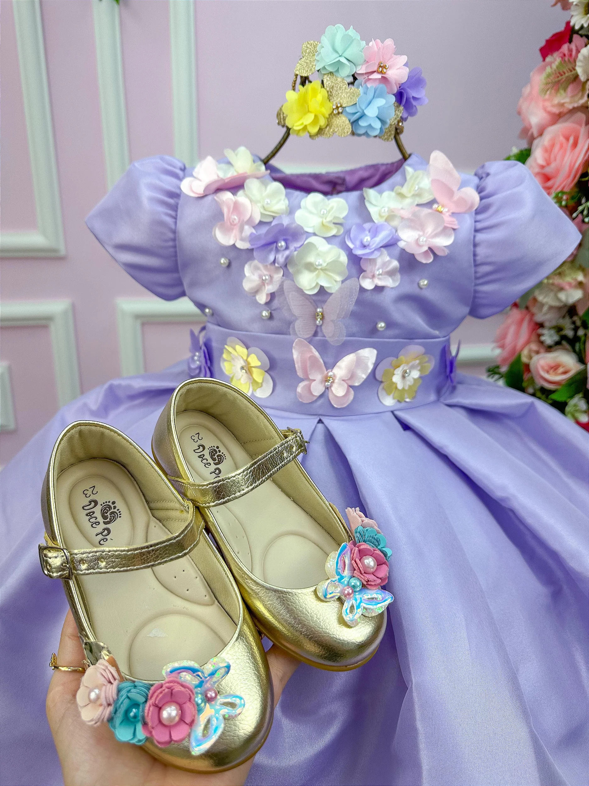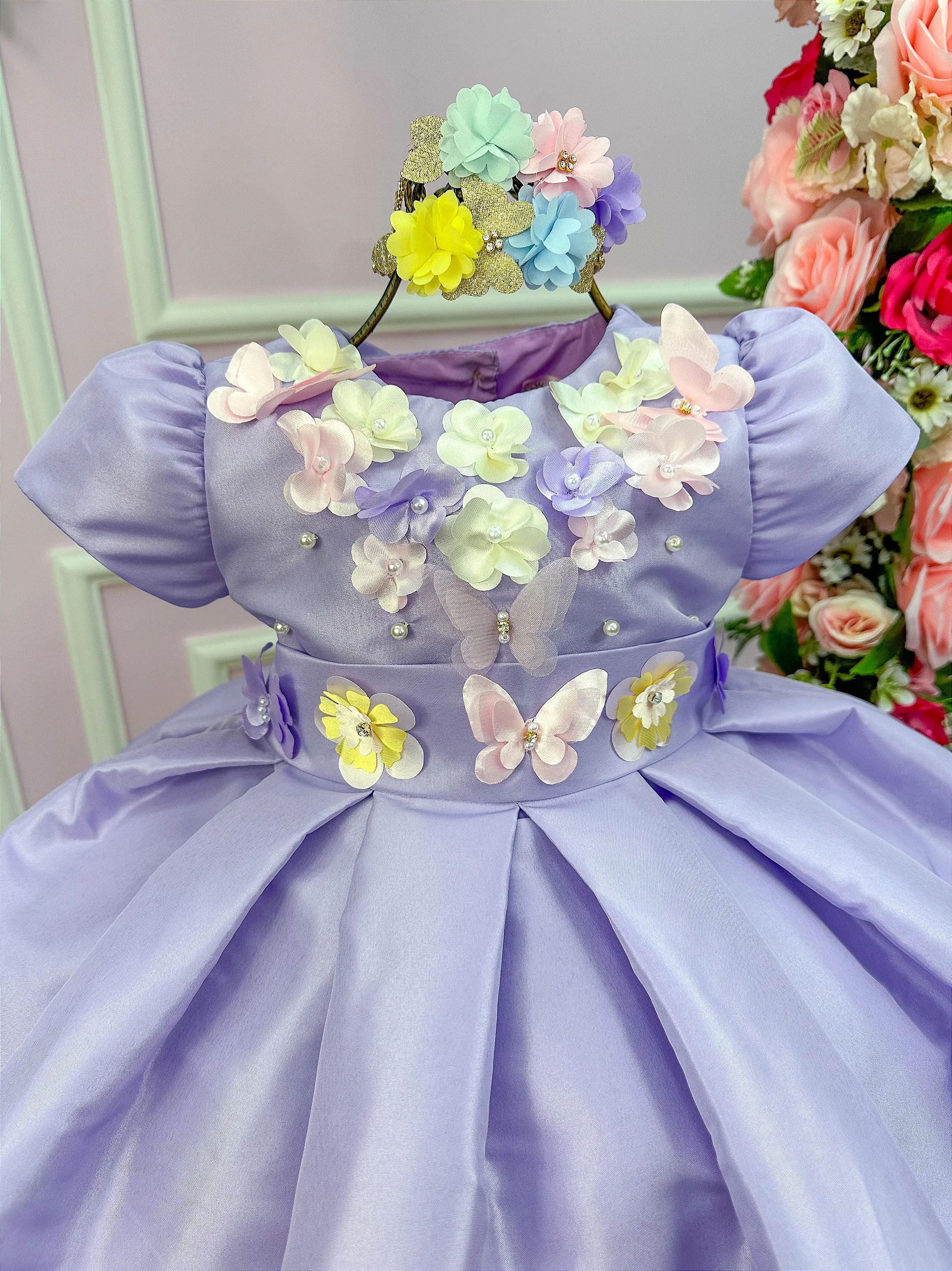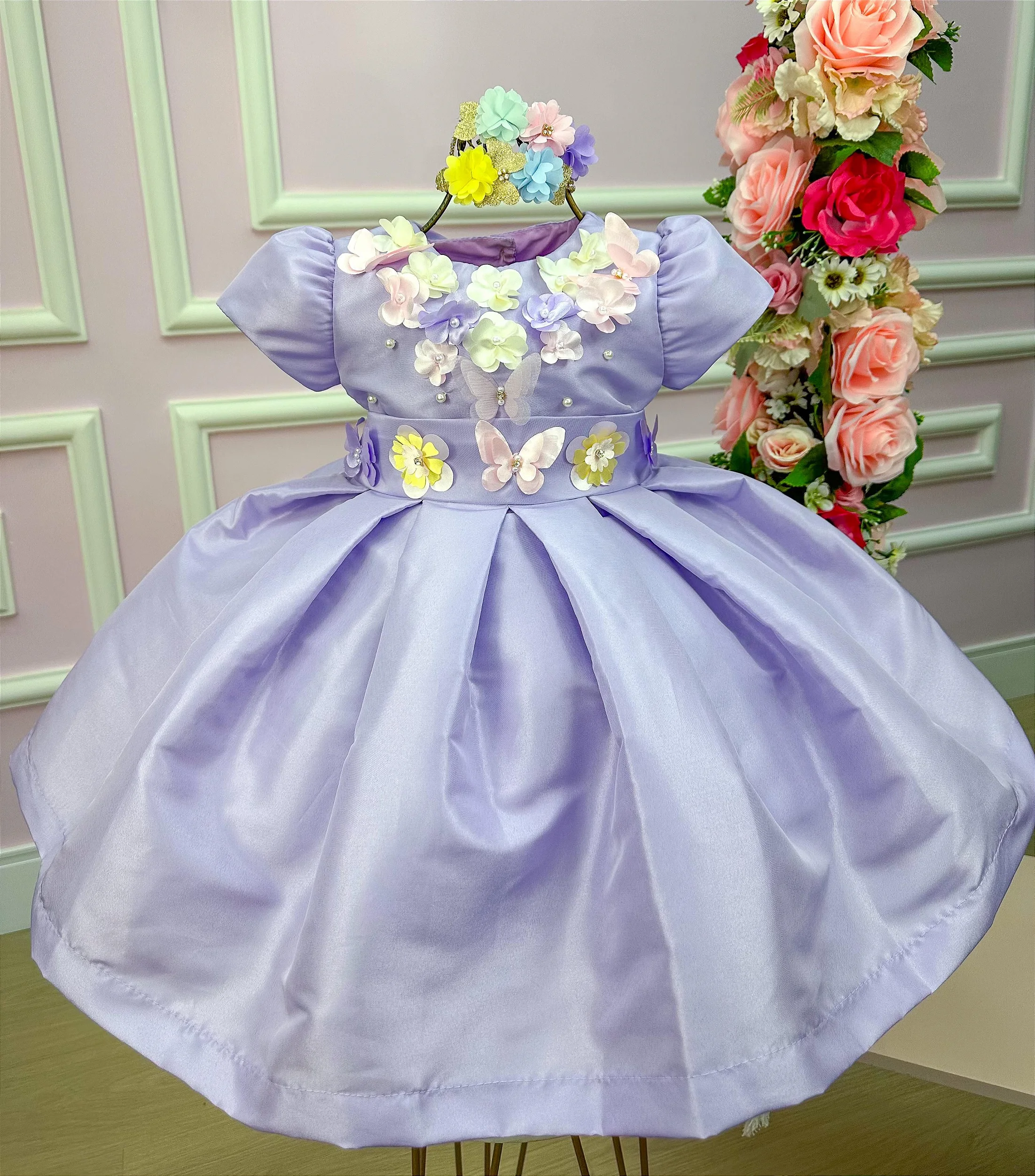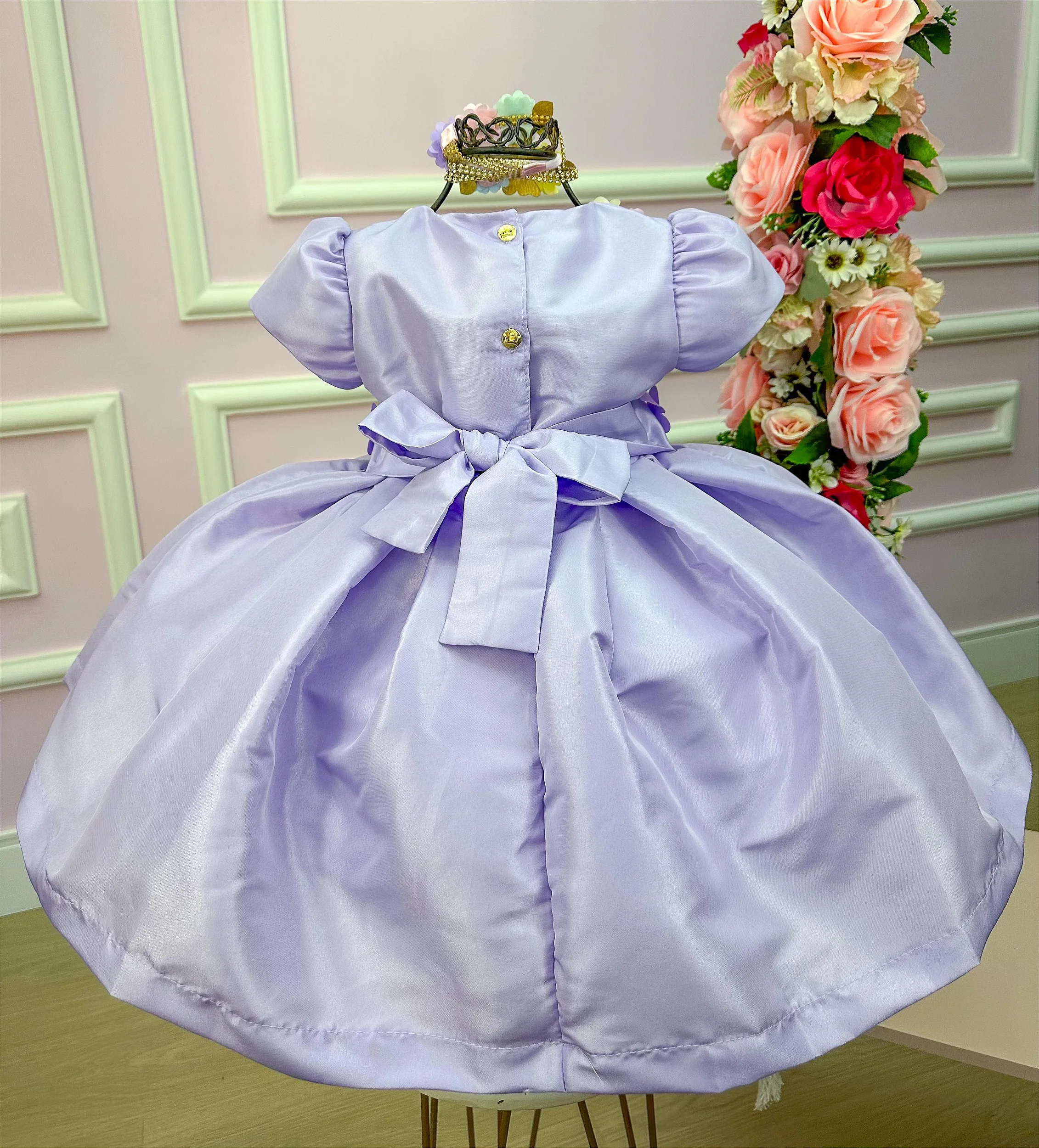 Confeccionado em tecido misto possui forro em poliéster e algodão para não incomodar a criança e proporcionando um caimento incrível e sofisticado, possui gola redonda, comprimento médio, mangas curtas, possui elástico nas costas para melhor ajuste, e acabamento com lindo laço na parte posterior do vestido completa o look dos sonhos!