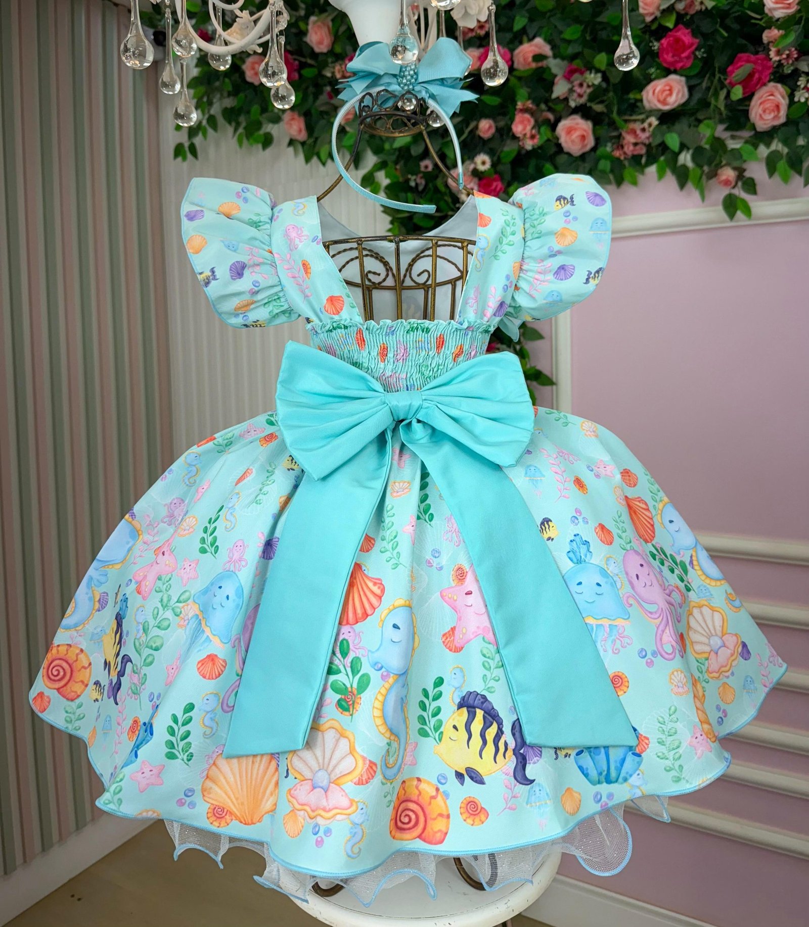 Confeccionado em tecido misto possui forro em poliéster e algodão para não incomodar a criança e proporcionando um caimento incrível e sofisticado, possui gola redonda, comprimento médio, mangas curtas, possui elástico nas costas para melhor ajuste, acabamento com lindo laço na parte posterior do vestido completa o look dos sonhos!