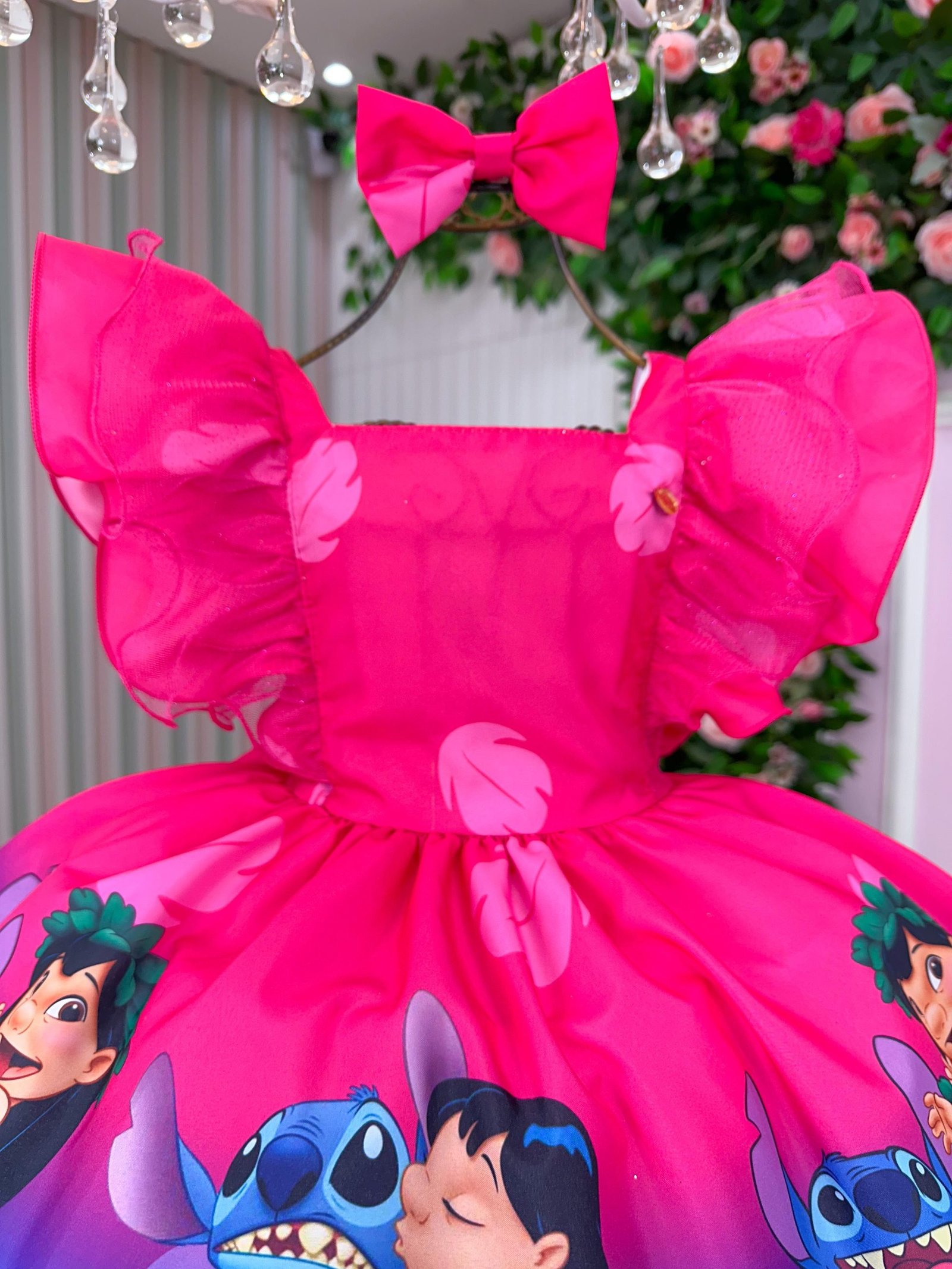 Confeccionado em tecido misto possui forro em poliéster e algodão para não incomodar a criança e proporcionando um caimento incrível e sofisticado, possui gola redonda, comprimento médio, mangas curtas, possui elástico nas costas para melhor ajuste, acabamento com lindo laço na parte posterior do vestido completa o look dos sonhos!