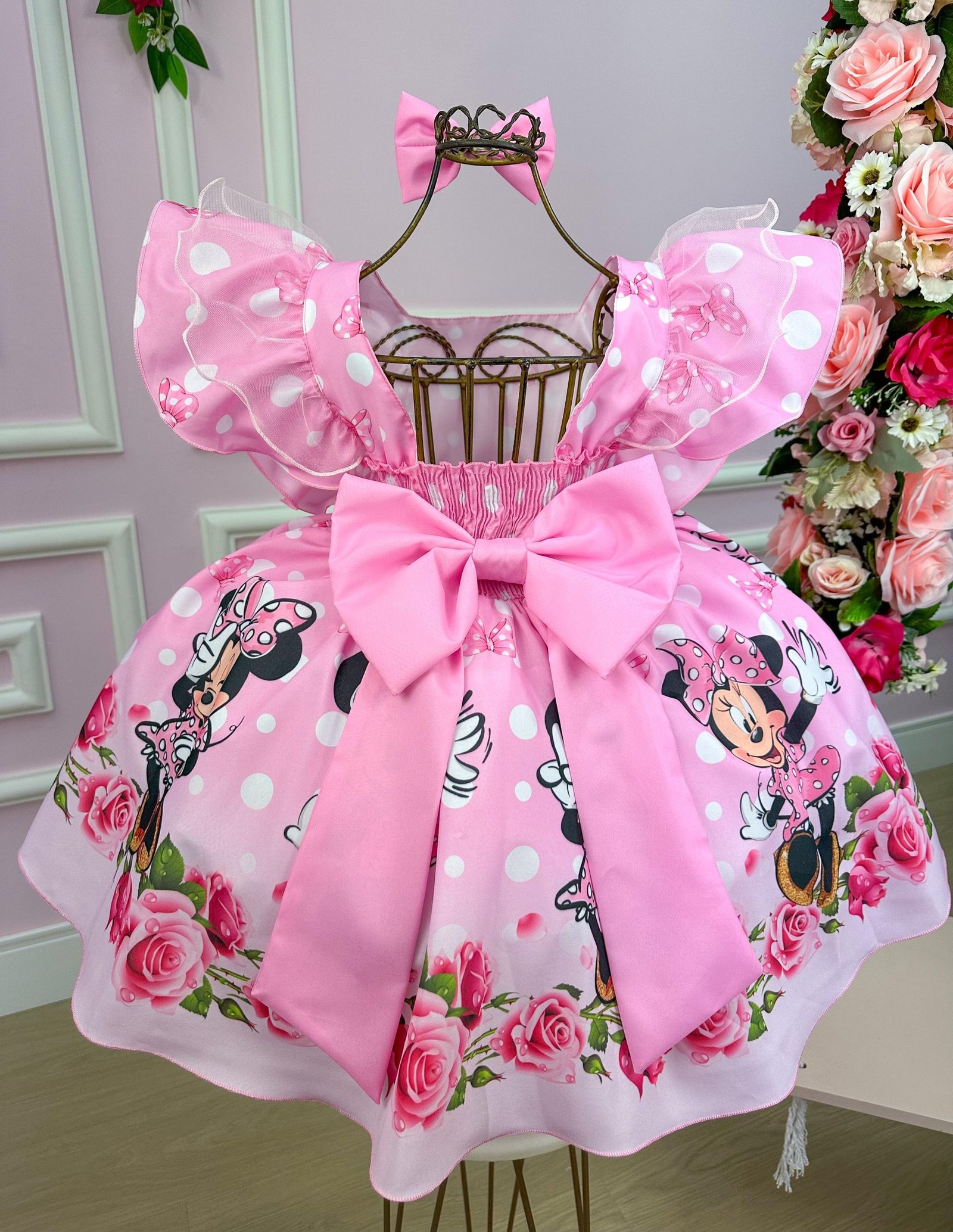 Confeccionado em tecido misto possui forro em poliéster e algodão para não incomodar a criança e proporcionando um caimento incrível e sofisticado, possui gola redonda, comprimento médio, mangas curtas, possui elástico nas costas para melhor ajuste, acabamento com lindo laço na parte posterior do vestido completa o look dos sonhos!