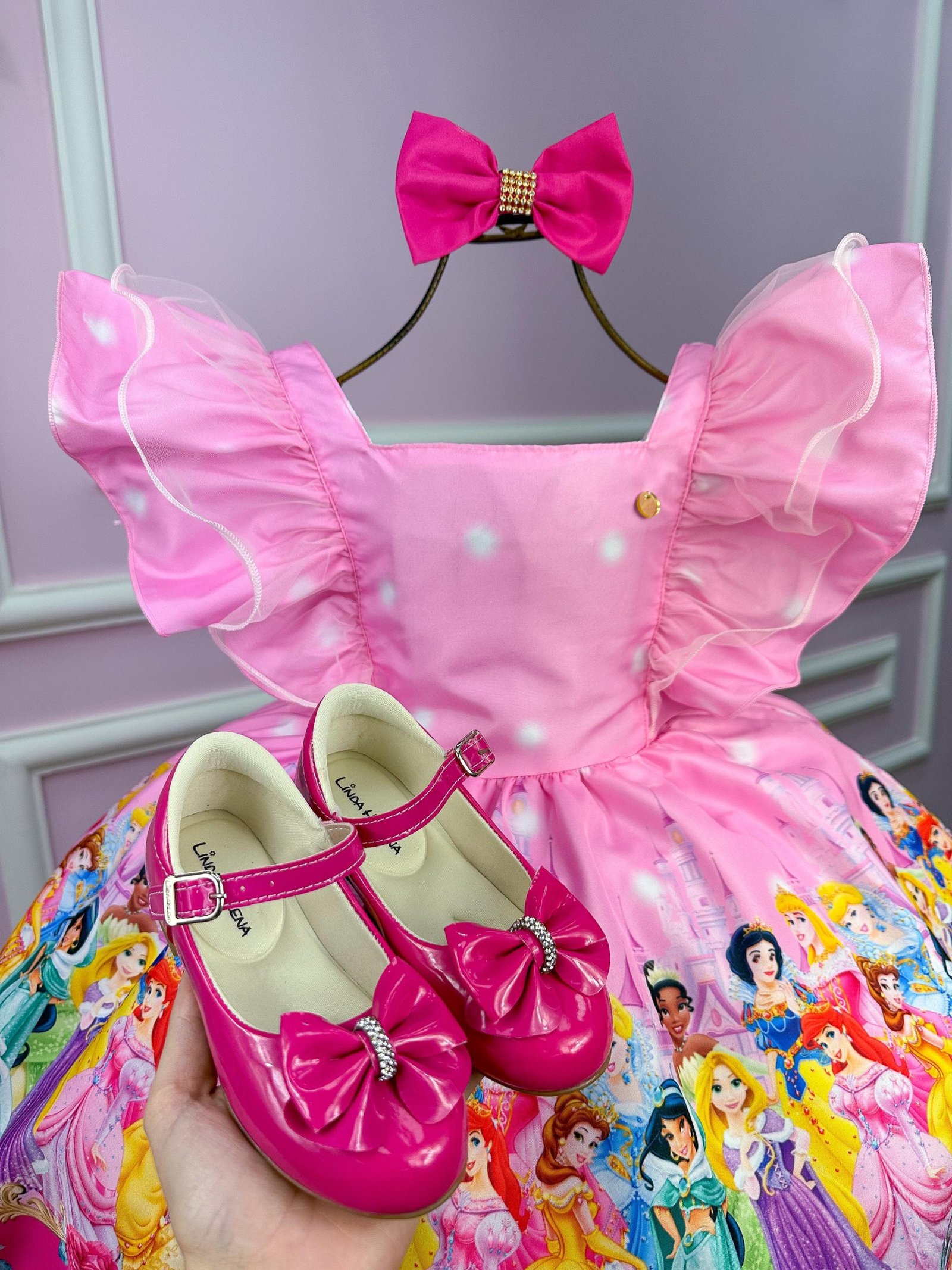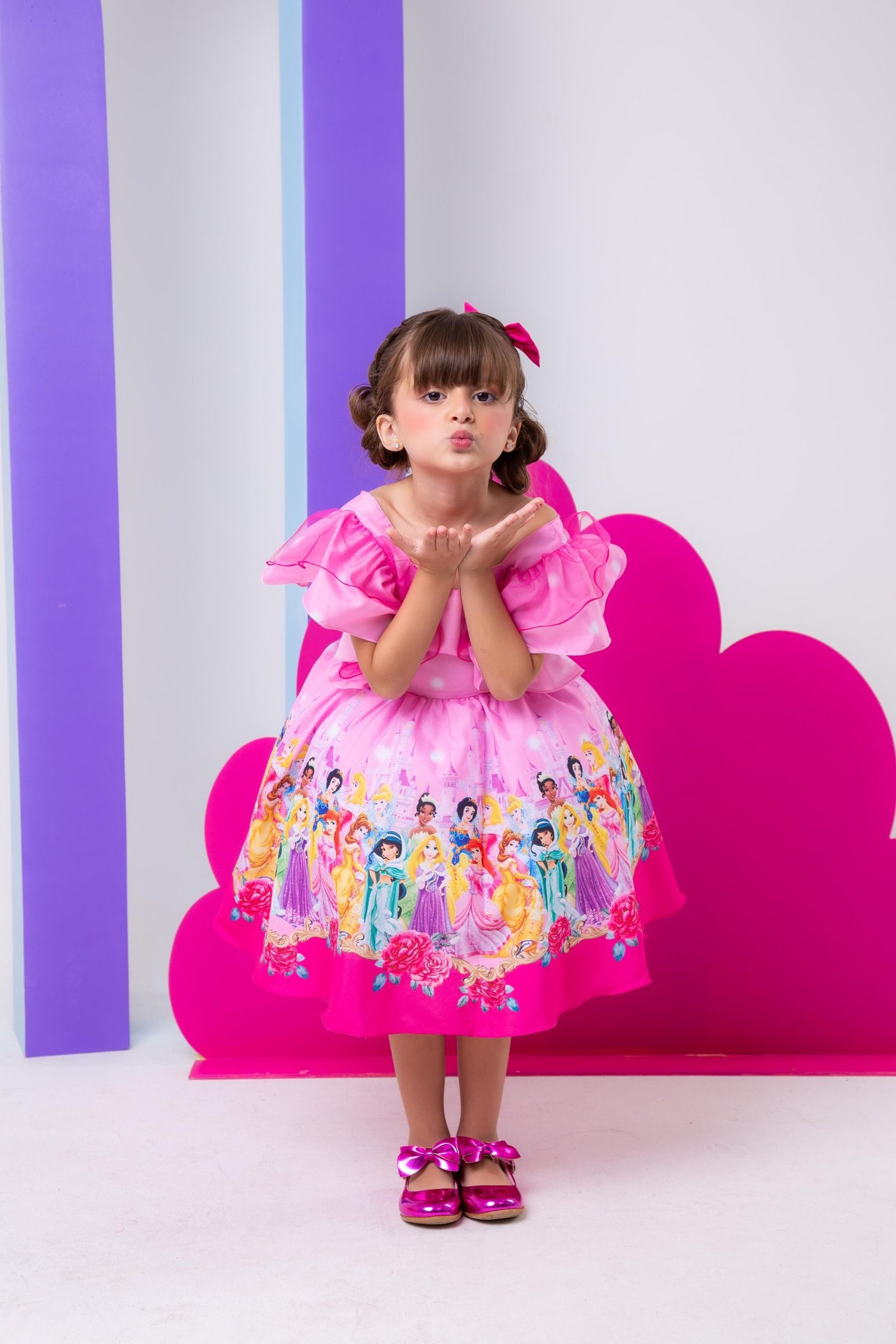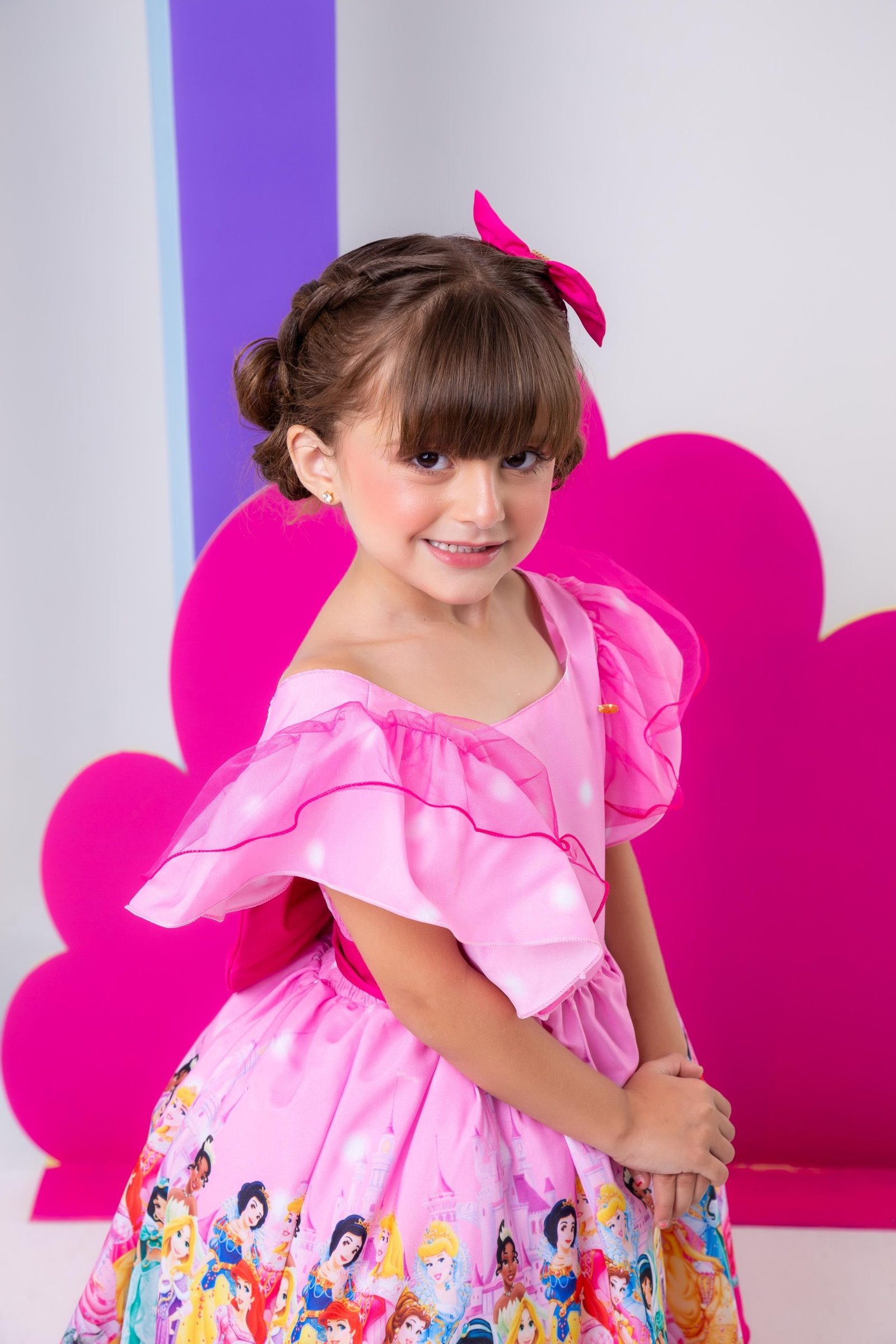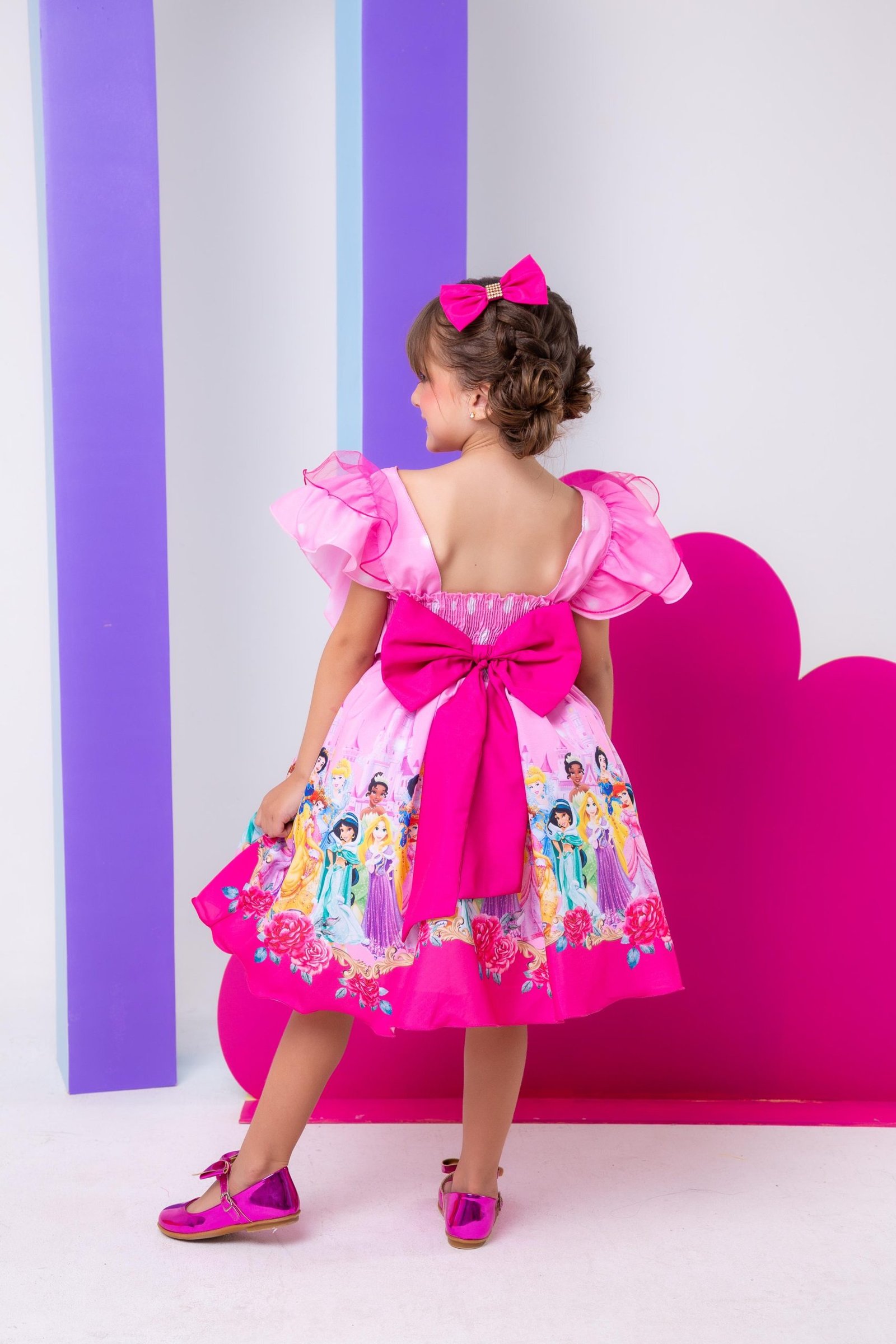 Confeccionado em tecido misto possui forro em poliéster e algodão para não incomodar a criança e proporcionando um caimento incrível e sofisticado, possui gola redonda, comprimento médio, mangas curtas, possui elástico nas costas para melhor ajuste, acabamento com lindo laço na parte posterior do vestido completa o look dos sonhos!