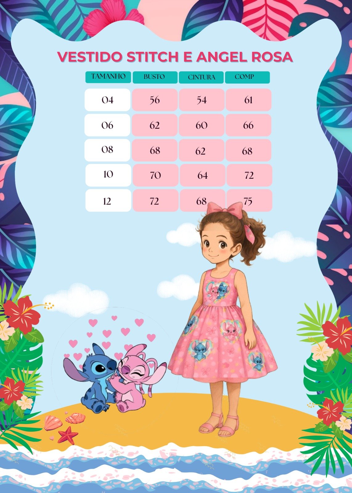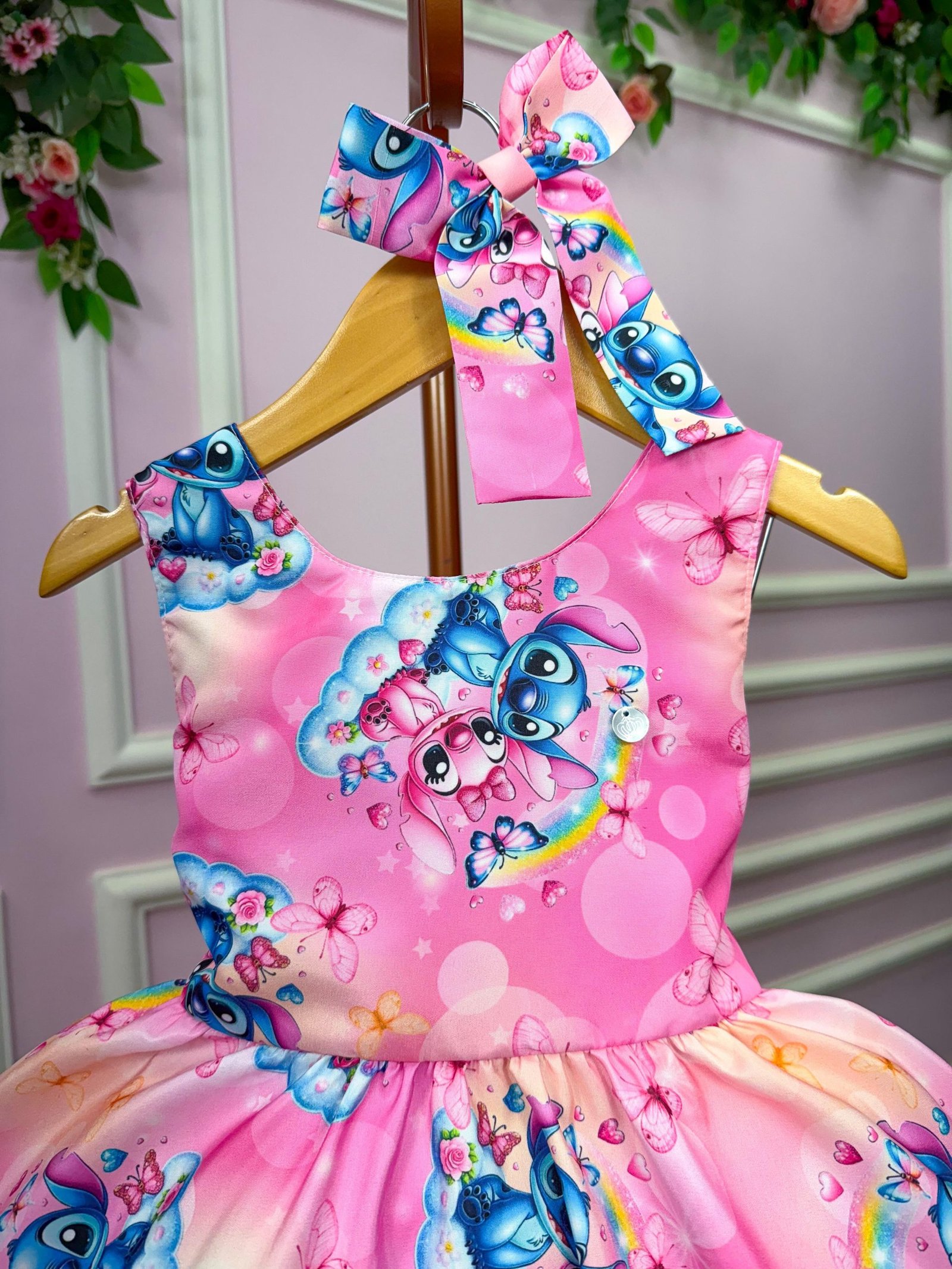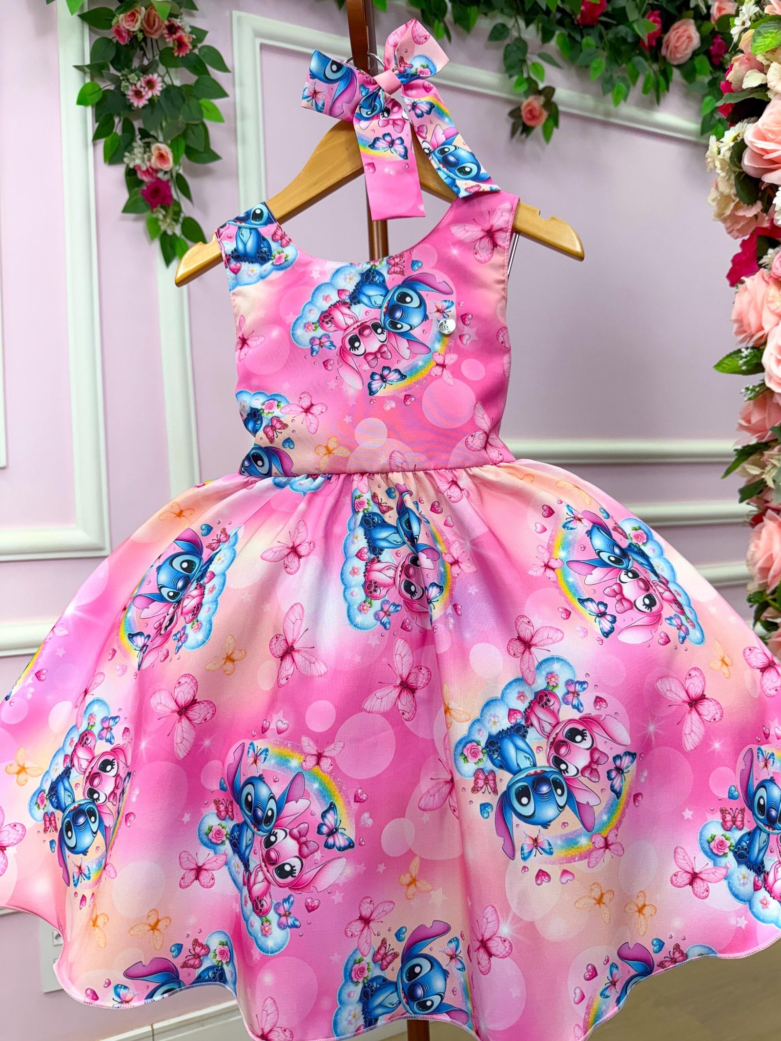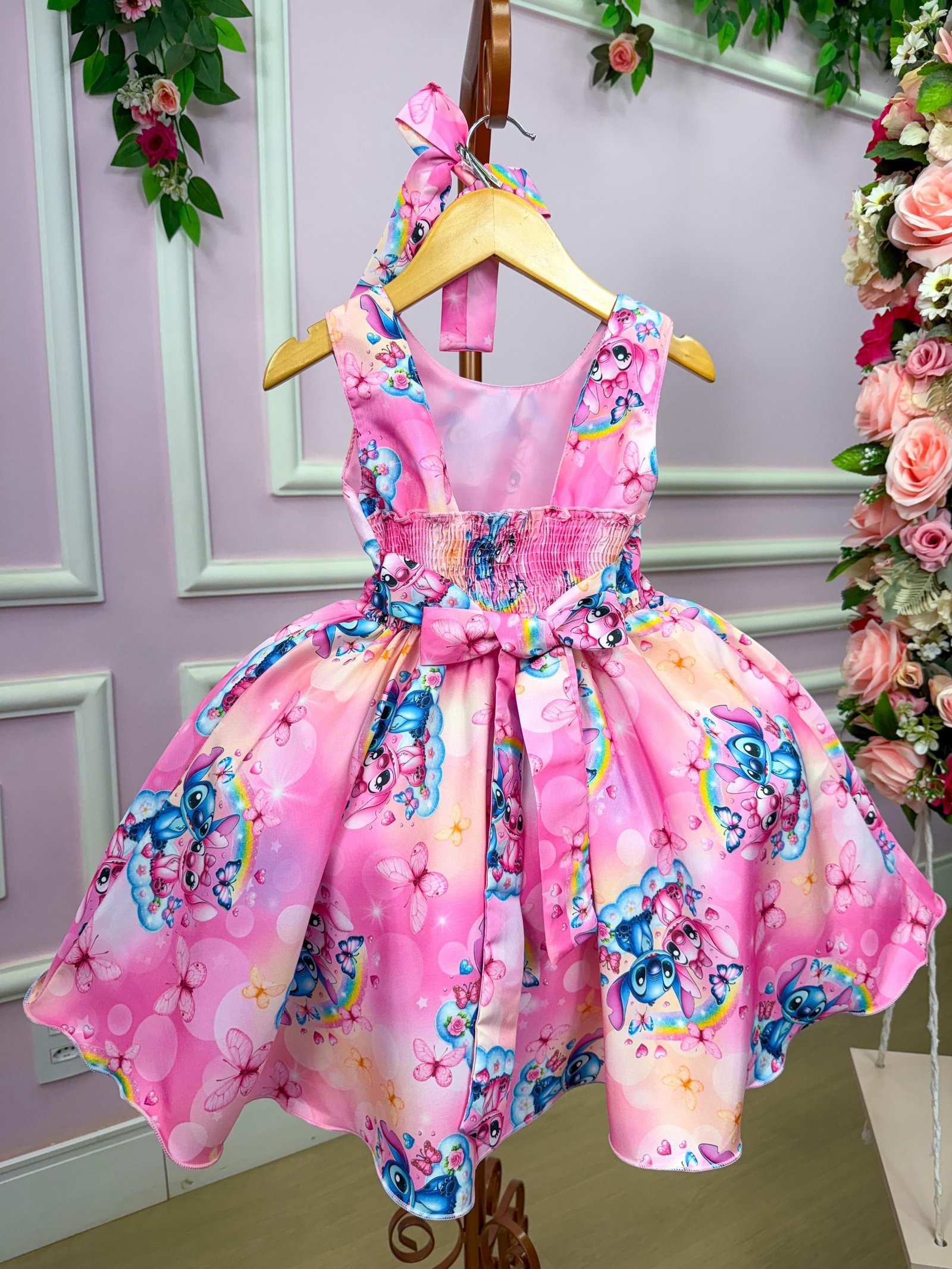 Vestido Tematicos Kids Stitch e Angel Rosa