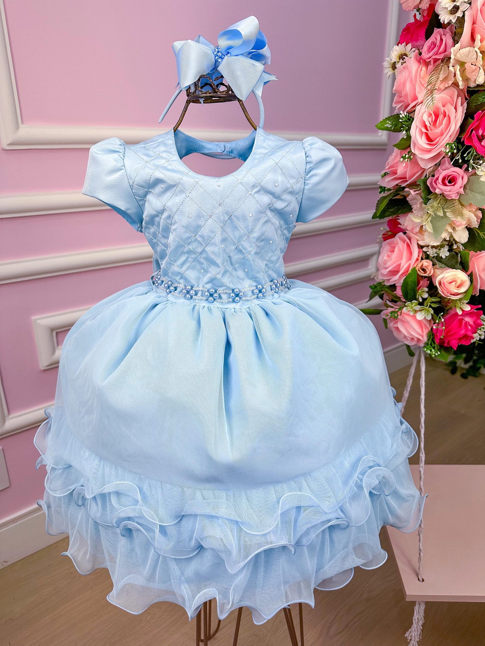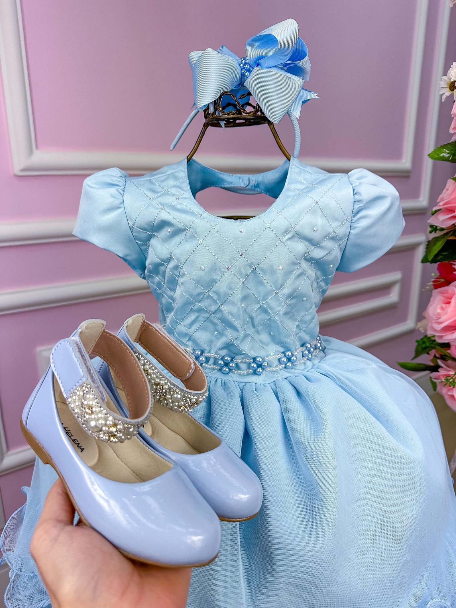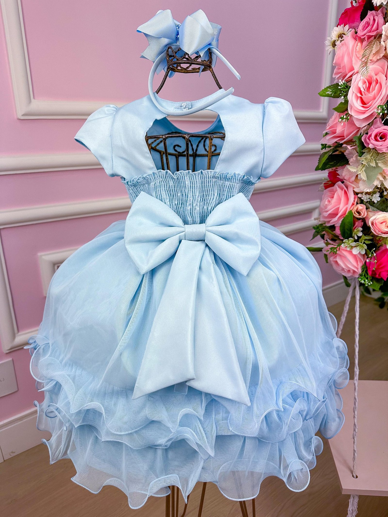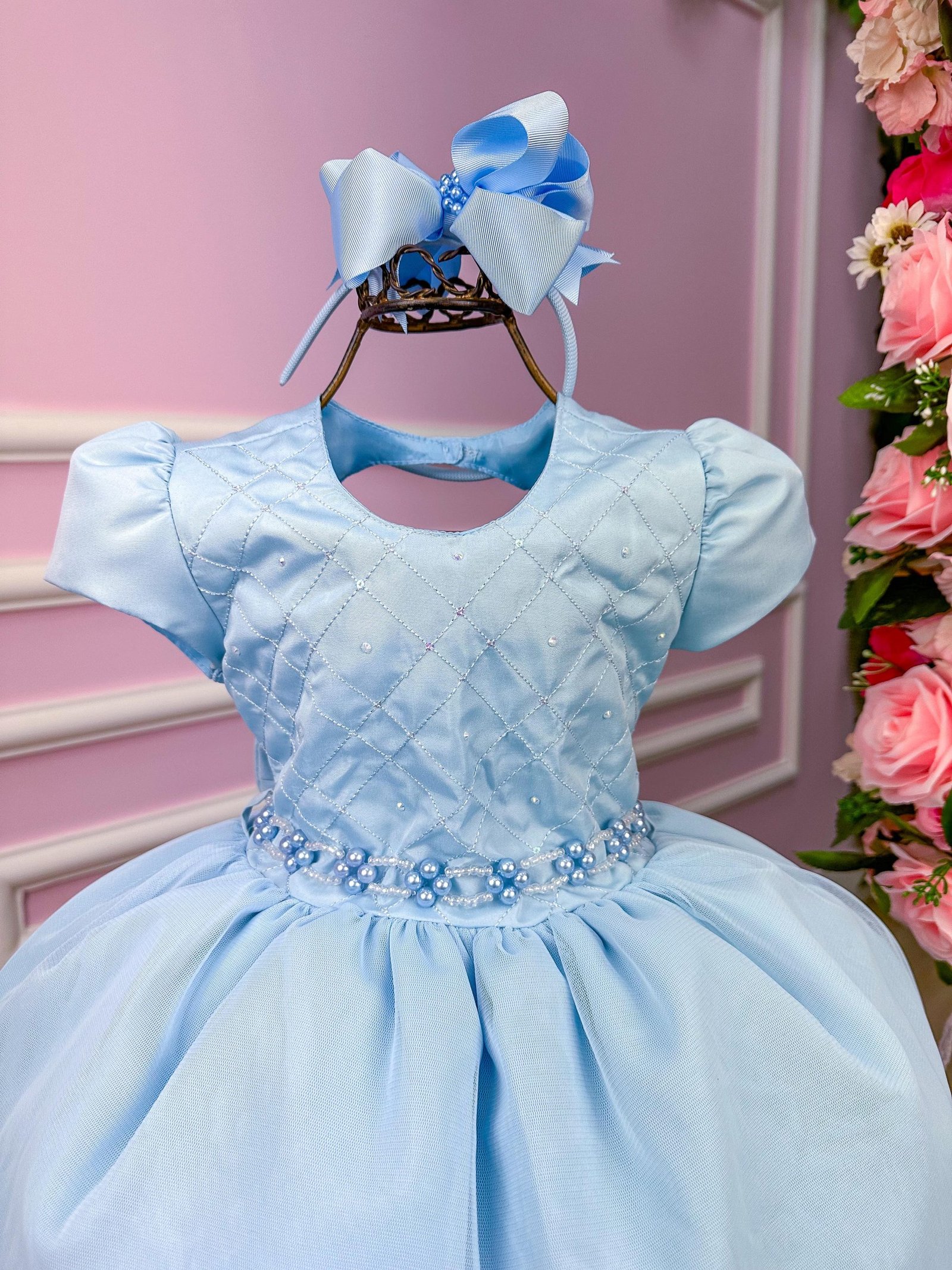 Confeccionado em tecido misto possui forro em poliéster e algodão para não incomodar a criança e proporcionando um caimento incrível e sofisticado, possui gola redonda,comprimento médio, mangas curtas, possui elástico nas costas para melhor ajuste, acabamento com lindo laço na parte posterior do vestido completa o look dos sonhos!