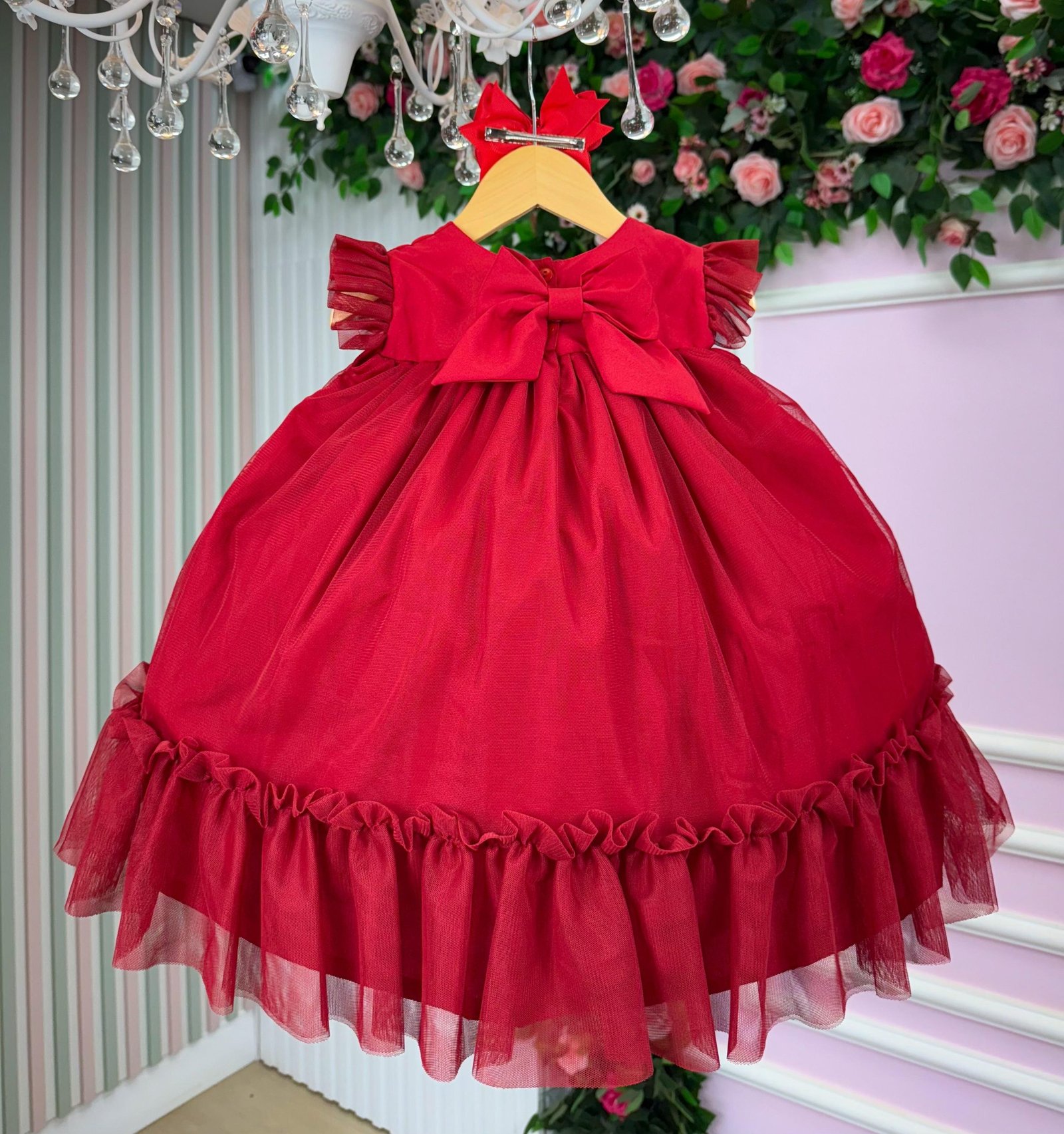 Confeccionado em tecido misto possui forro em poliéster e algodão para não incomodar a criança e proporcionando um caimento incrível e sofisticado, possui gola redonda,comprimento médio, mangas curtas, acabamento com lindo laço na parte posterior do vestido completa o look dos sonhos!