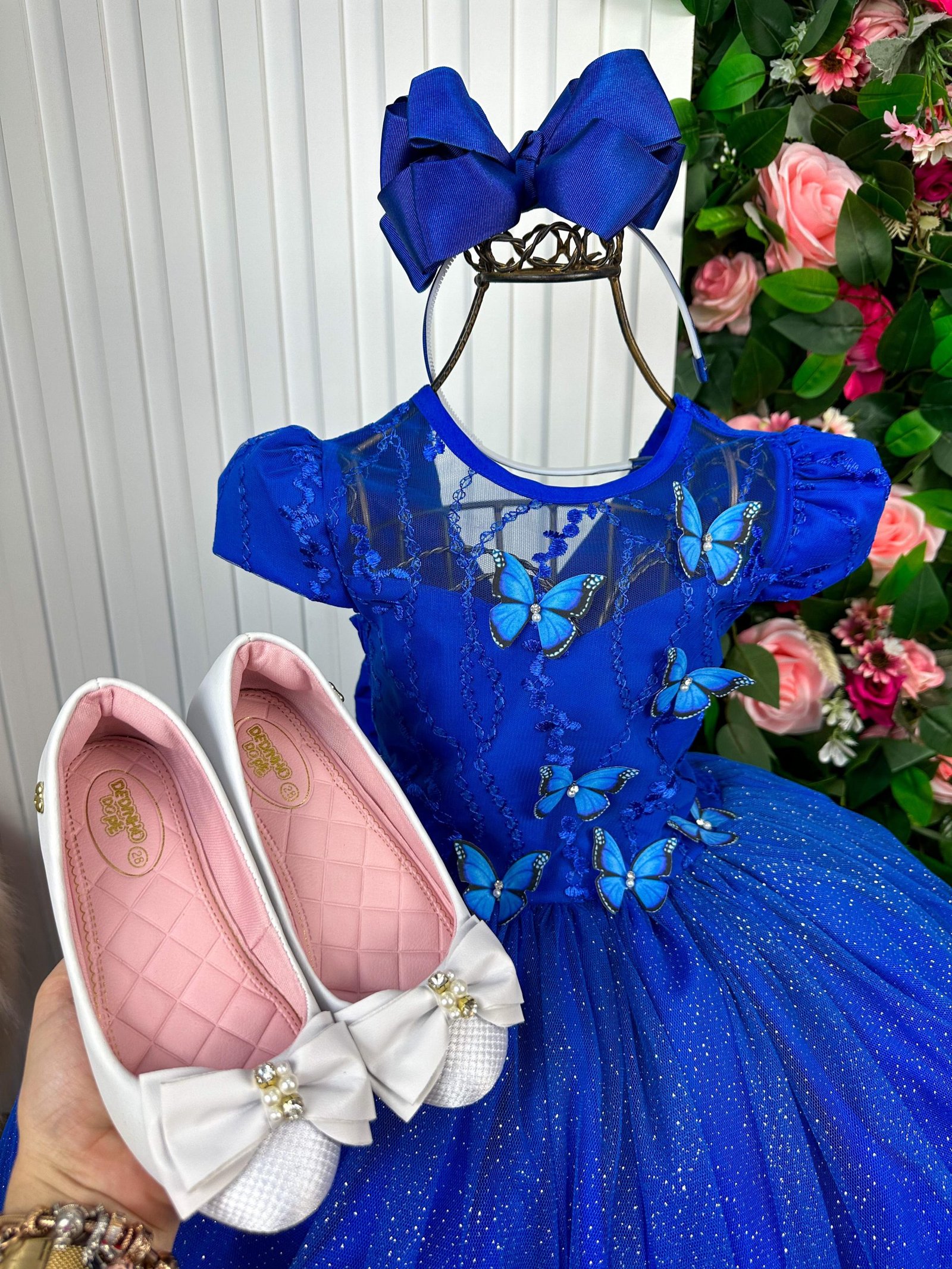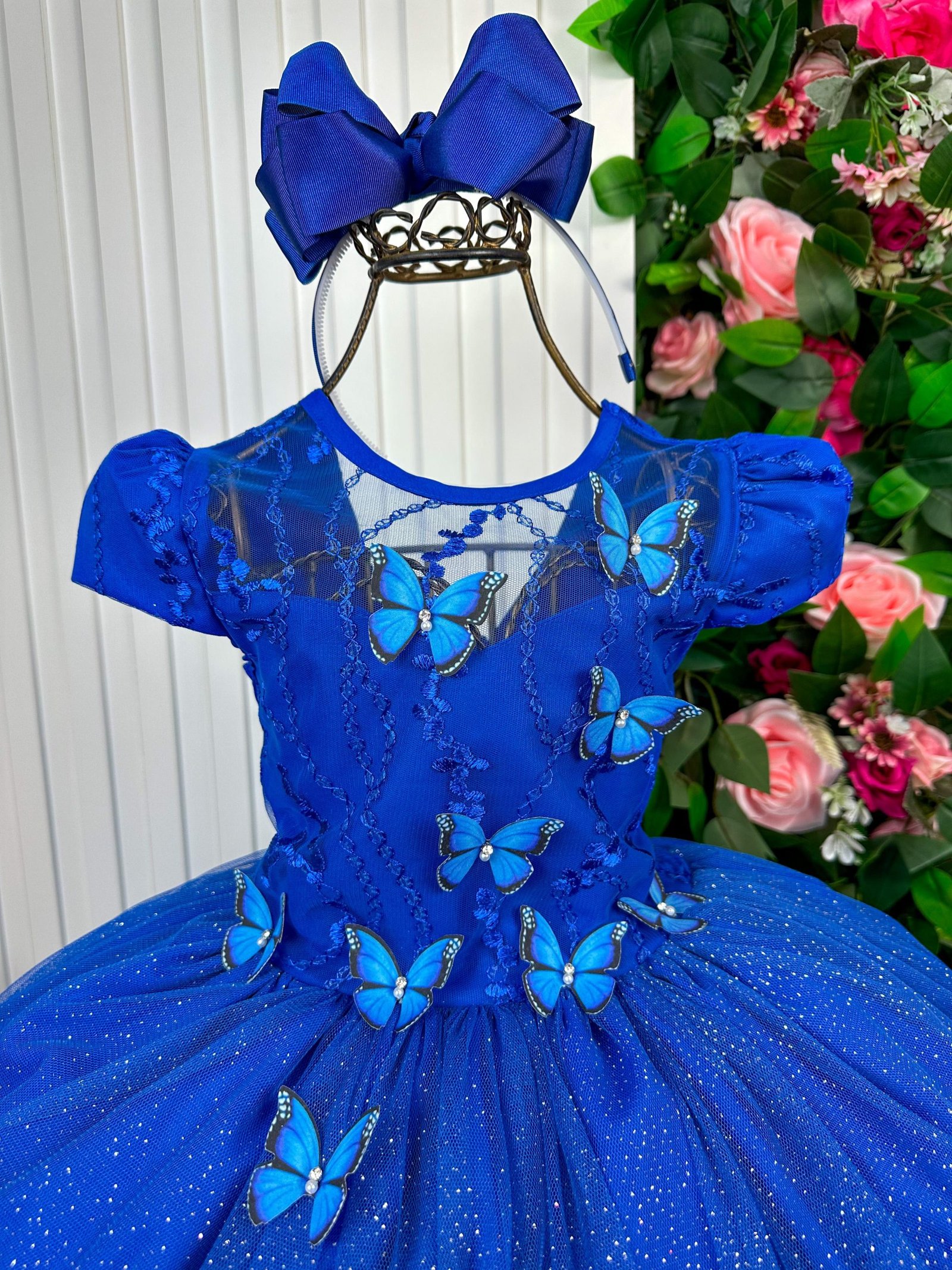 Vestido Vila Lele Longo Jardim Encantado Borboletas Azul Royal