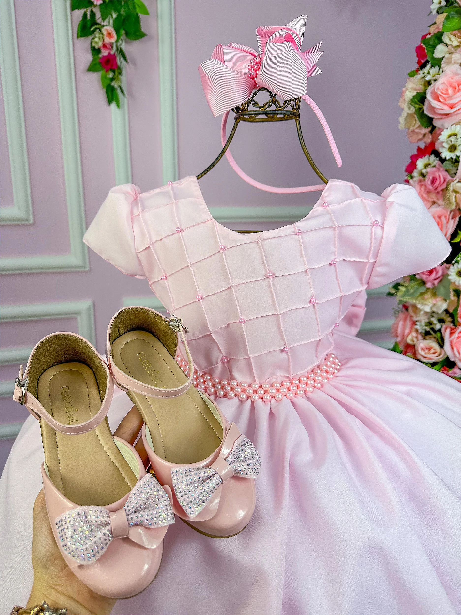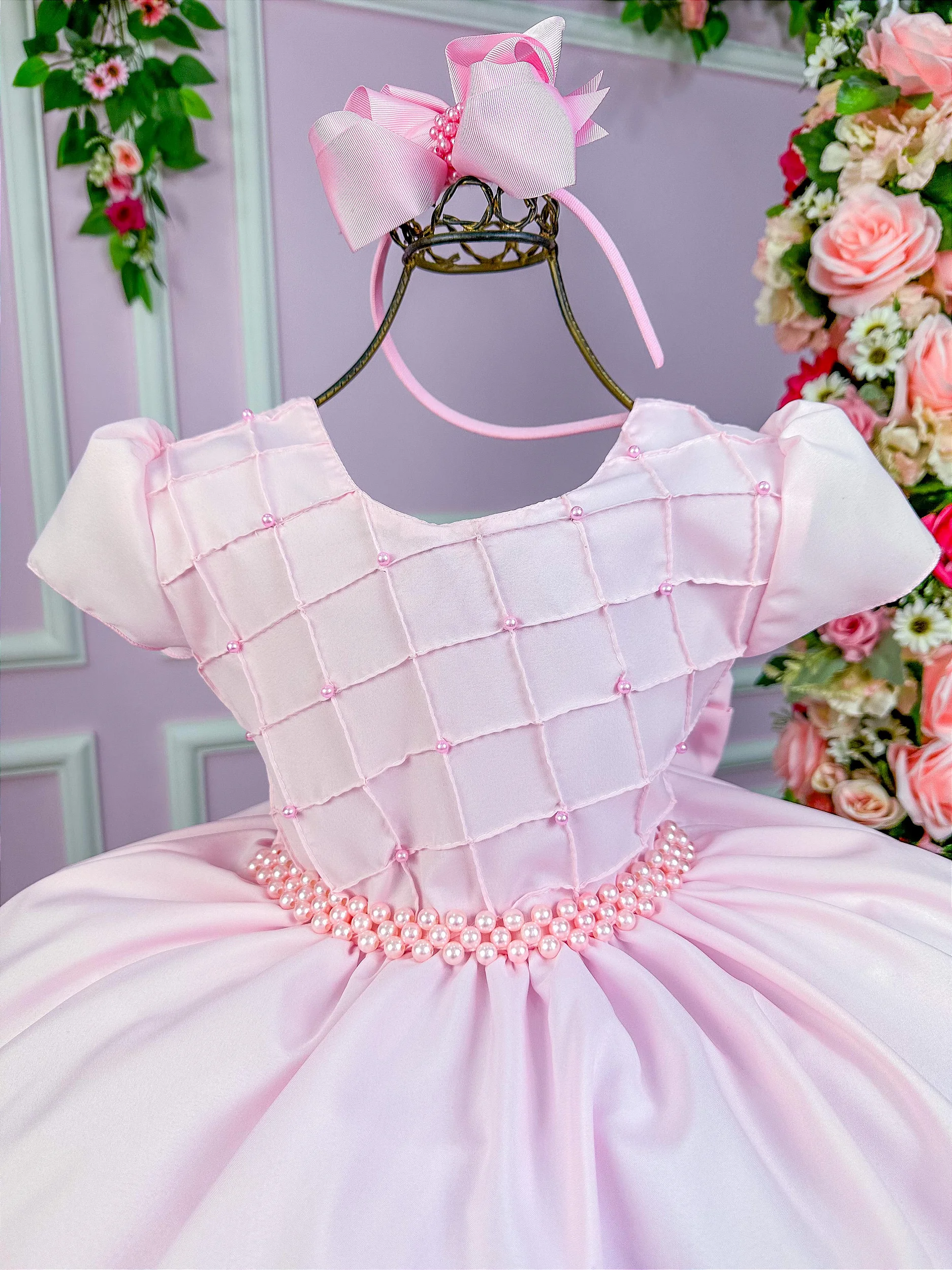 Vestido Ysa Kids Rosa Bebe Peito Perolas